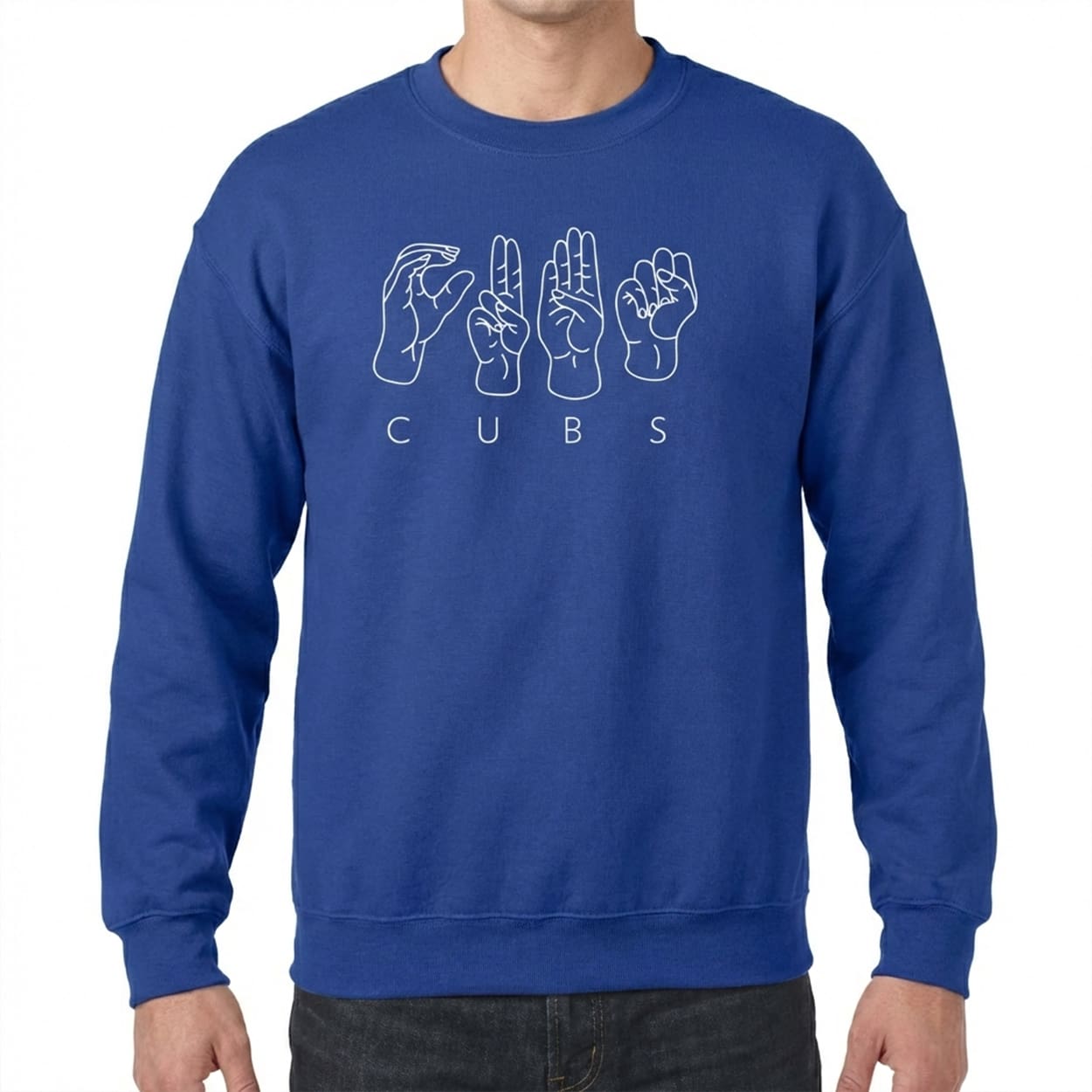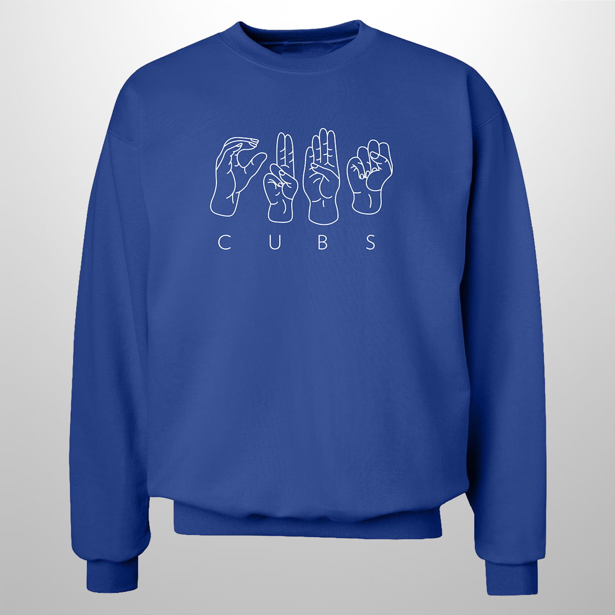This isn’t just a sweatshirt; it’s a conversation starter that speaks volumes without saying a word. Dressed in the signature Cubs royal blue, this crewneck features a striking white graphic front and center. It showcases four hand illustrations accurately depicting the American Sign Language (ASL) finger-spelling for C-U-B-S. Directly beneath the handshapes, the word “CUBS” is printed in a clean, modern typeface, ensuring the message is clear to everyone. It’s a minimalist yet powerful design that puts the beauty of manual communication in the spotlight, perfect for those chilly night games at the Friendly Confines.