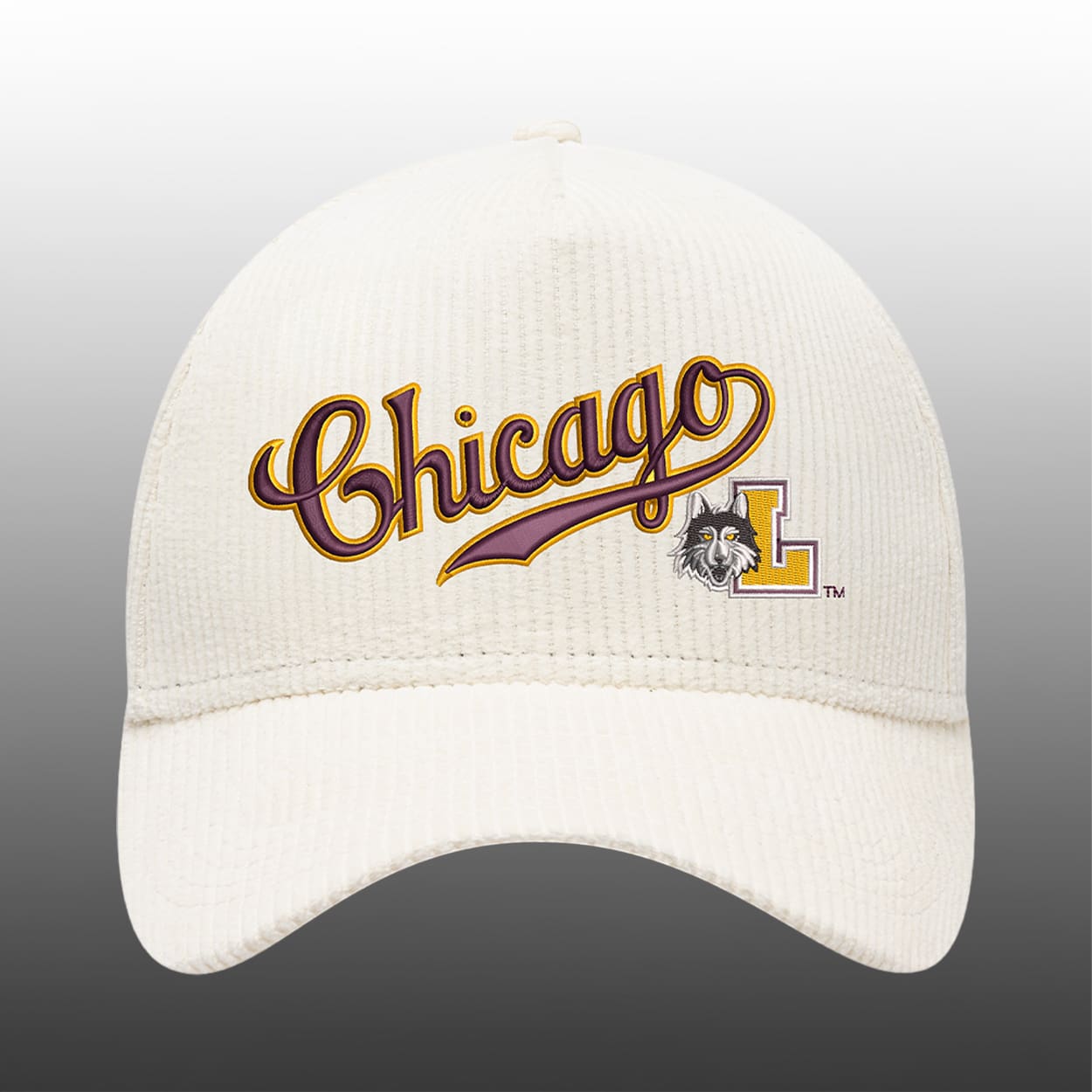 Celebrate the perfect double play of collegiate pride and professional baseball with this cap. This cap features a clean, cream-colored base that highlights the rich maroon and gold of the Ramblers. Dominating the front is a flowing, retro-style “Chicago” script in deep maroon with a sharp gold outline. Tucked just below is the fierce LU Wolf mascot standing alongside a bold, gold “L” logo. Turn the hat around to find “CHICAGO CUBS” proudly embroidered in block letters above an adjustable snapback closure, ensuring a comfortable fit for every fan at the Friendly Confines.