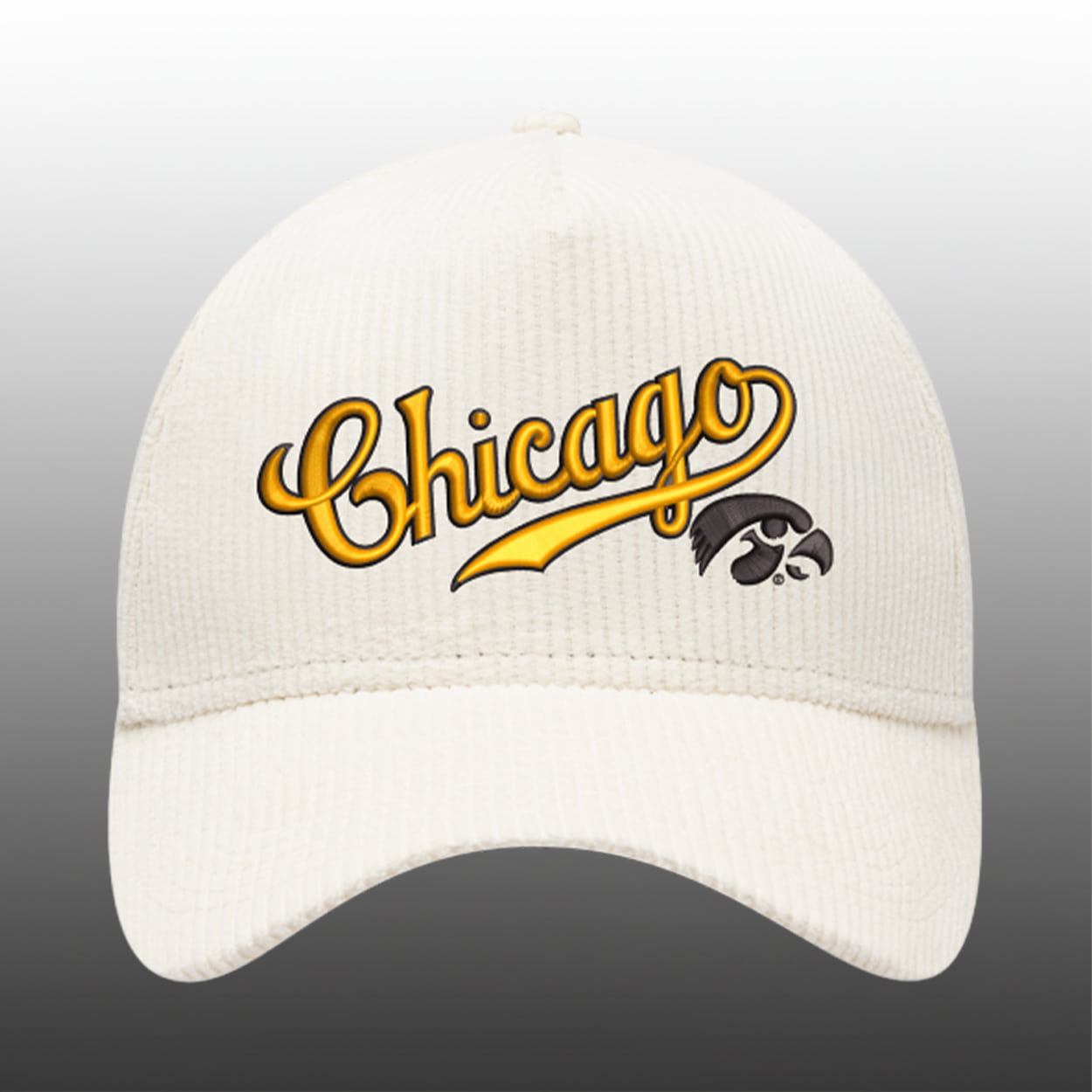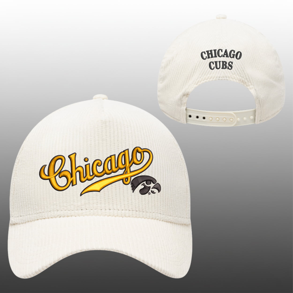 This cap is more than just ballpark swag—it’s a conversation starter. On the front, “Chicago” pops in bright yellow script outlined in black, paired with the fierce Iowa Hawkeyes logo. Flip it around, and you’ll find “CHICAGO CUBS” stitched in bold black lettering above the adjustable strap. It’s a playful mash-up of two powerhouse sports identities, blending baseball tradition with college athletics energy.