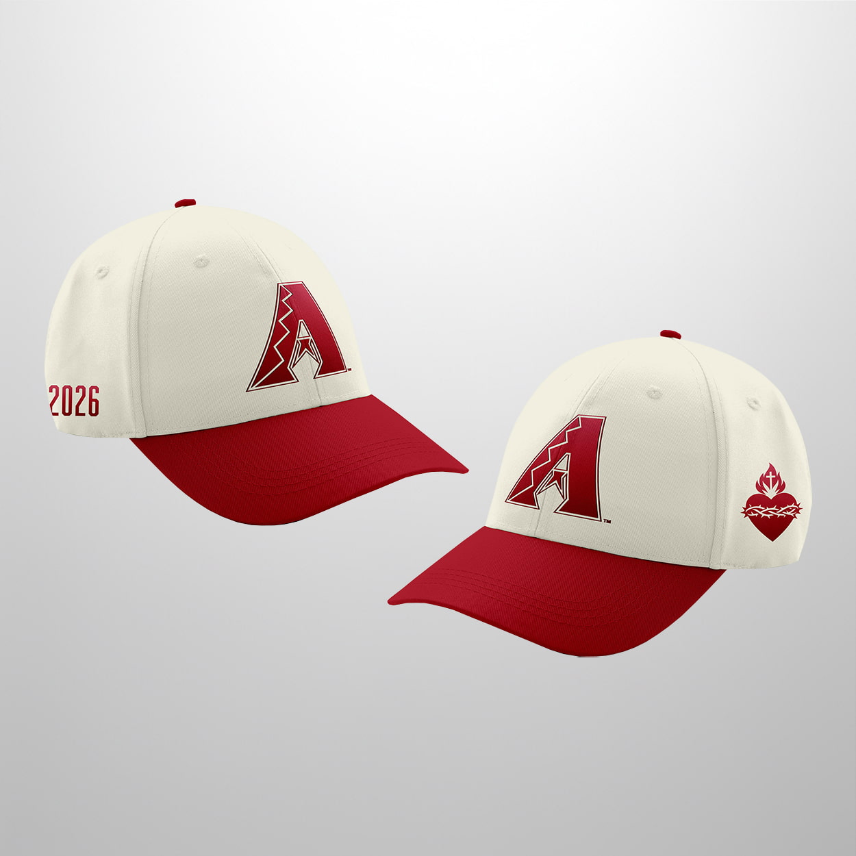 This cap is more than just game-day gear—it’s a keepsake that captures the energy of Catholic Night at Chase Field. Featuring a crisp white crown and a striking red brim, the front panel proudly displays the Diamondbacks’ iconic “A” logo, complete with its fierce snake-tongue detail. On the left side, the year “2026” is printed in bold red, marking the occasion with timeless flair.