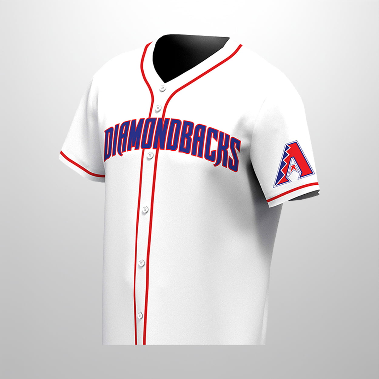 - Diamondbacks Legacy: The bold “DIAMONDBACKS” lettering across the chest in blue with a red outline represents strength and resilience, echoing the team’s fierce spirit.