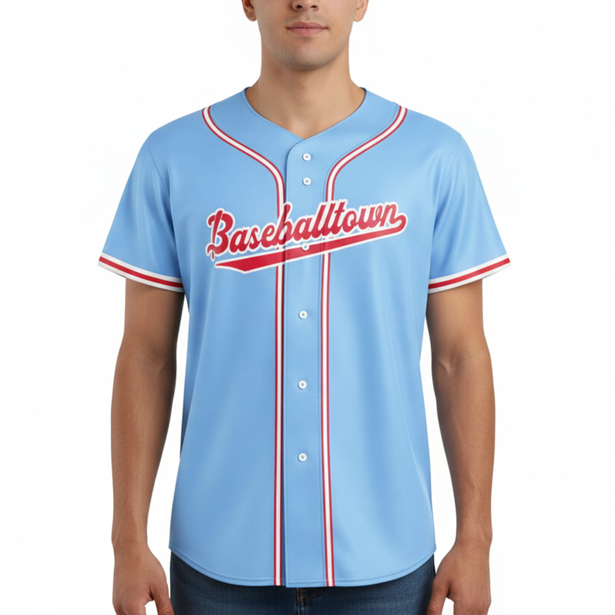 This year’s Opening Night jersey is a home run of nostalgia and flair. Drenched in light blue with crisp red-and-white accents, it features a button-up front, classic piping, and short sleeves trimmed for that vintage ballpark vibe. The centerpiece? “Baseballtown” emblazoned across the chest in a bold red script outlined in white—an unmistakable shoutout to the team’s roots and the fans who bleed red and blue. Whether you’re cheering from the stands or repping your town around the clock, this jersey brings the energy.