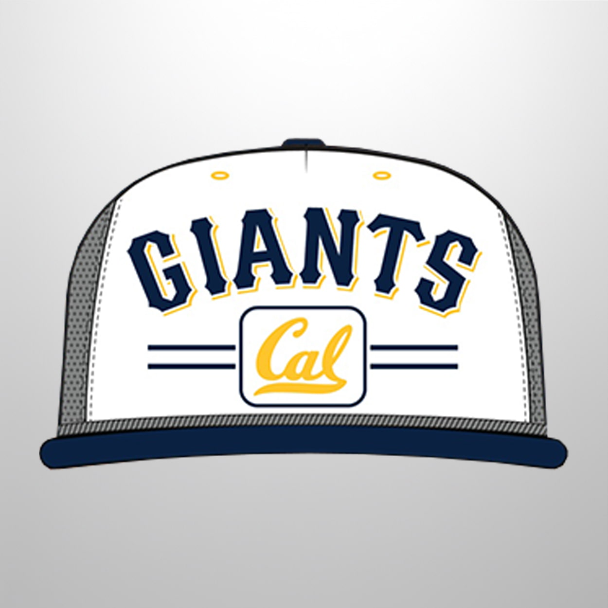 This year’s collaboration brings a sophisticated collegiate twist to the diamond. This hat features a crisp white crown that allows the navy blue “GIANTS” lettering to take center stage, accented by a sharp golden outline. The arched, varsity-style font provides a timeless campus feel, while the legendary “Cal” script is nestled perfectly in a gold-framed box below. Adding a touch of vintage character, a grey twisted rope runs along the base of the crown, seamlessly blending retro aesthetics with modern ballpark style.