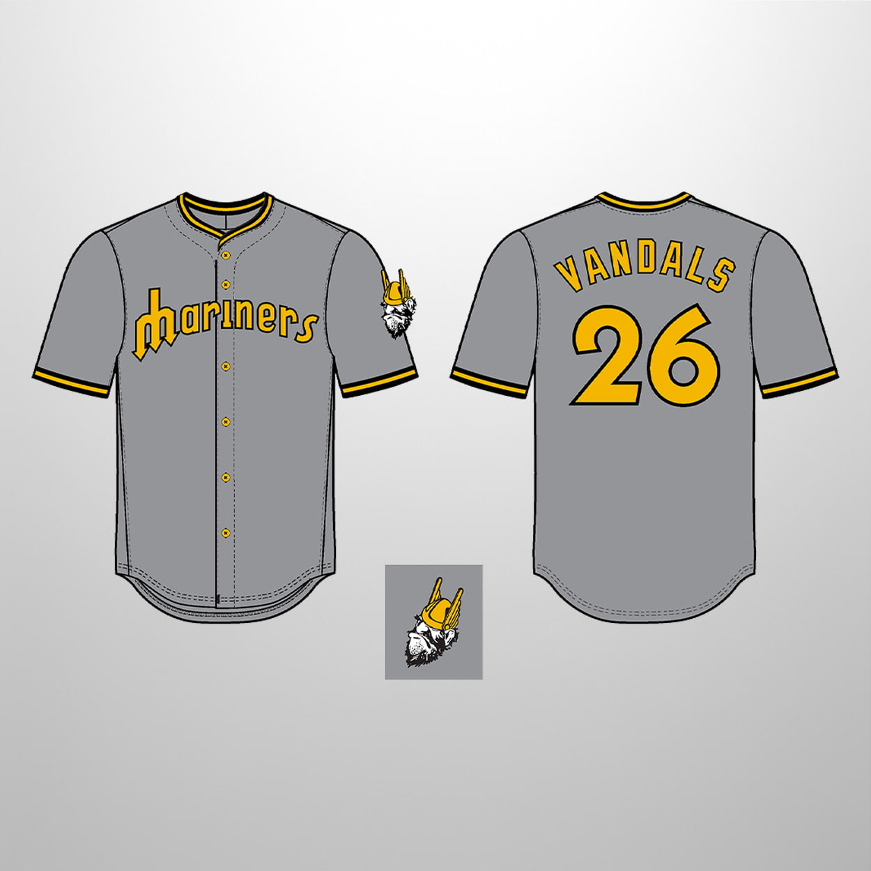 This jersey celebrates the shared energy of Mariners baseball and Vandal spirit. The stylized lettering and vibrant yellow accents echo the fearless attitude of both fan bases. The sleeve patch, equal parts playful and rebellious, embodies the boldness of those who cheer loud and live proud. It’s not just apparel—it’s a wearable symbol of creativity, confidence, and community.