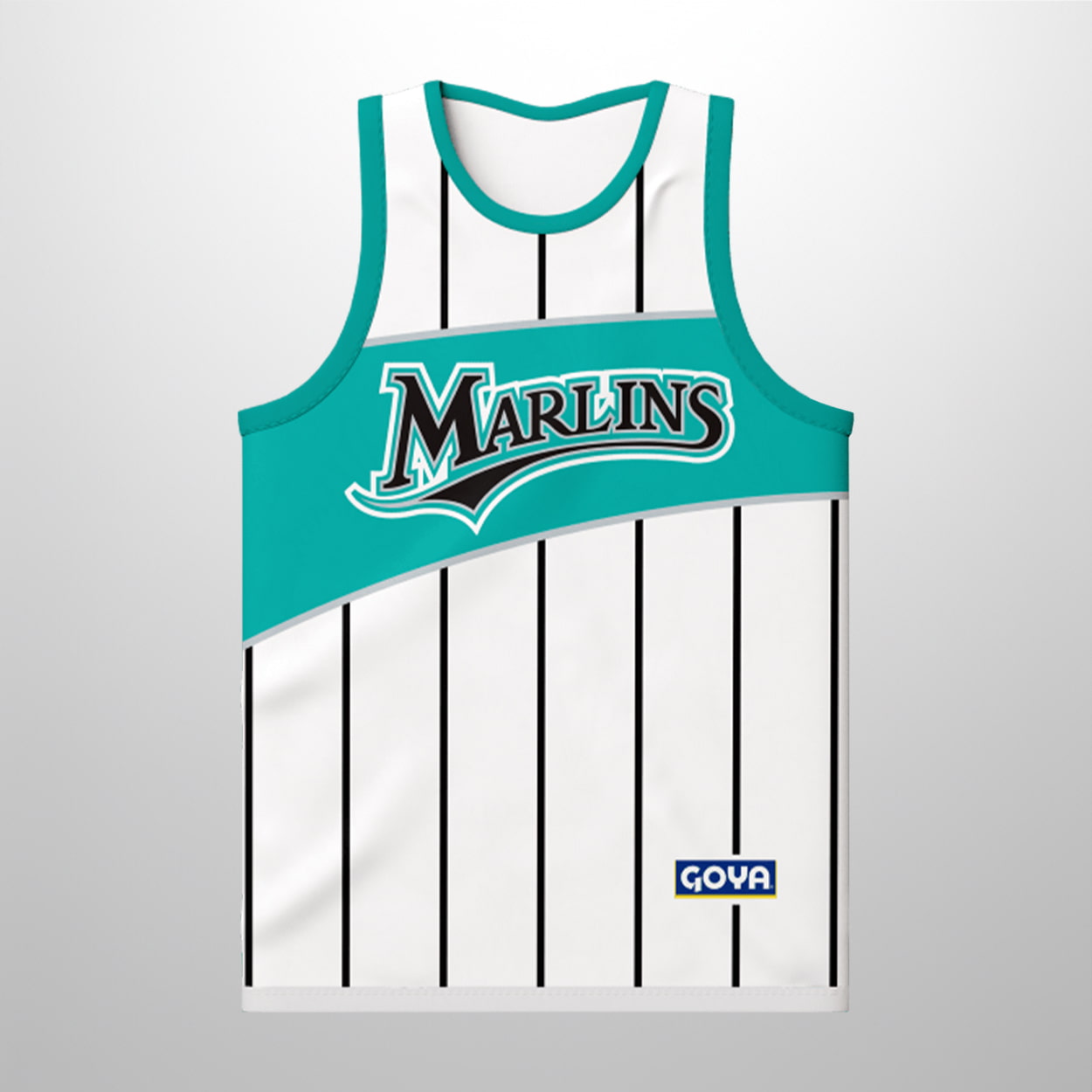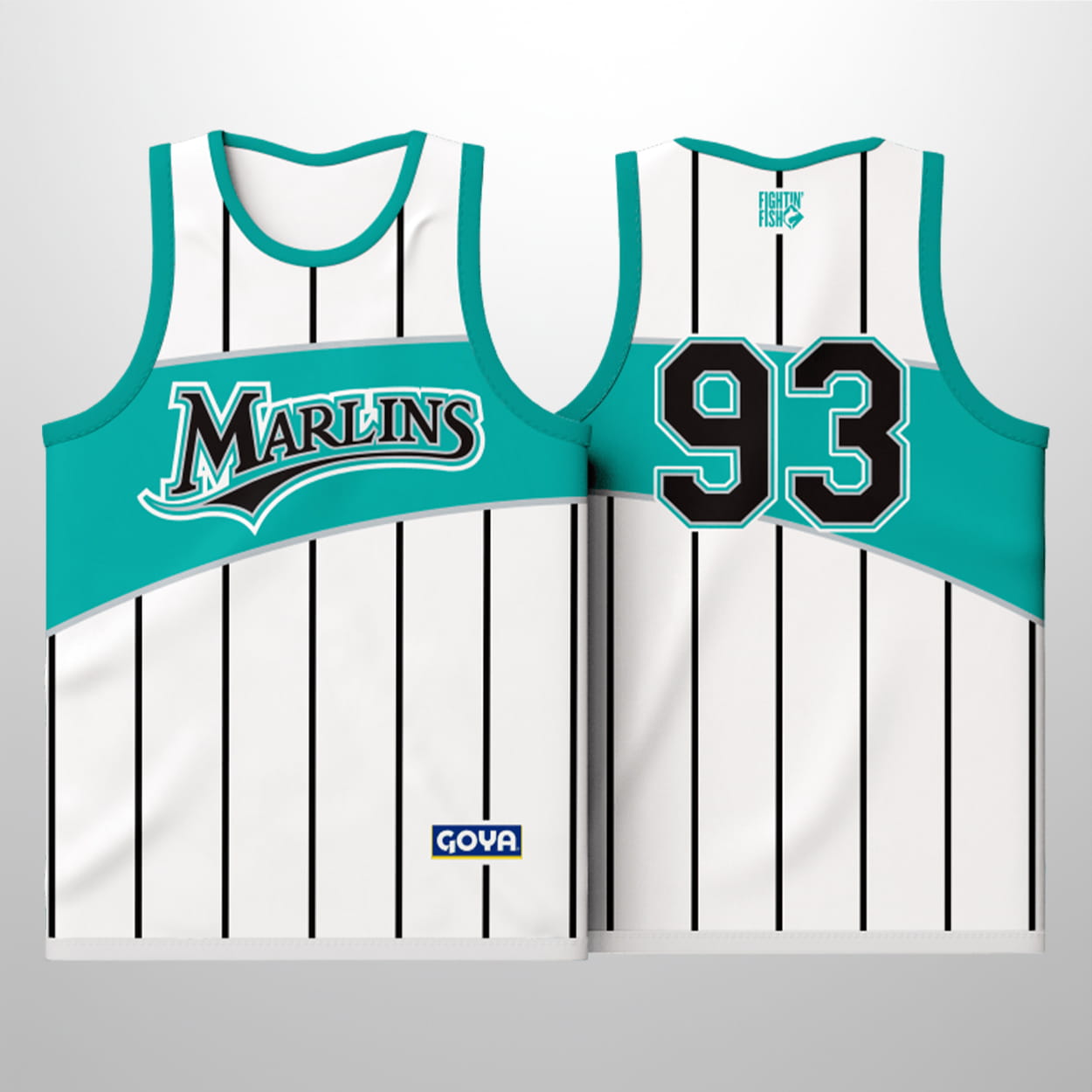 Step onto the court—or into the stands—with this jersey. This sleeveless stunner features a crisp white base accented by sleek black pinstripes, topped with a vibrant teal upper section that instantly catches the eye. Across the chest, “MARLINS” is splashed in stylized lettering, riding above a playful teal wave that nods to the team’s coastal spirit. Flip it around, and the bold number “93” pops in black with a teal outline, ensuring you look just as sharp from the back.