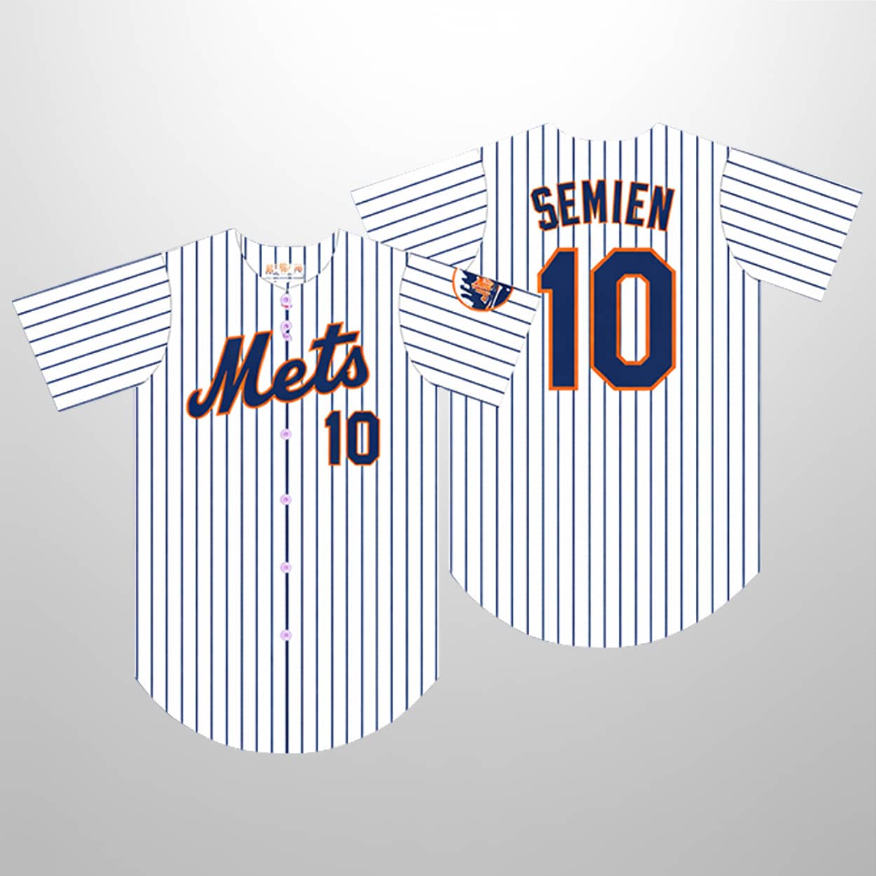 Step into Citi Field style with this jersey. This jersey captures the essence of Mets tradition with crisp blue pinstripes on a clean white canvas. Across the chest, the word “Mets” shines in the team’s signature script, while the number 10 anchors the look with athletic flair. Flip it around, and you’ll find SEMIEN proudly displayed above the number 10, making it unmistakably a tribute to one of baseball’s most dynamic players. A Mets logo patch on the sleeve completes the look, ensuring fans wear their loyalty with pride.