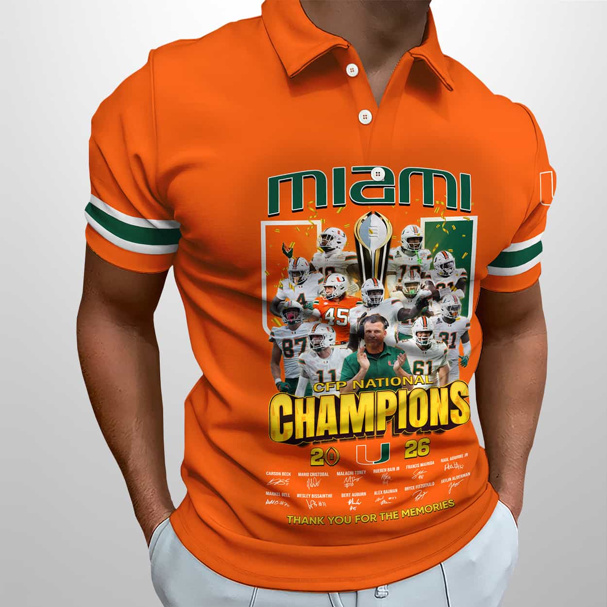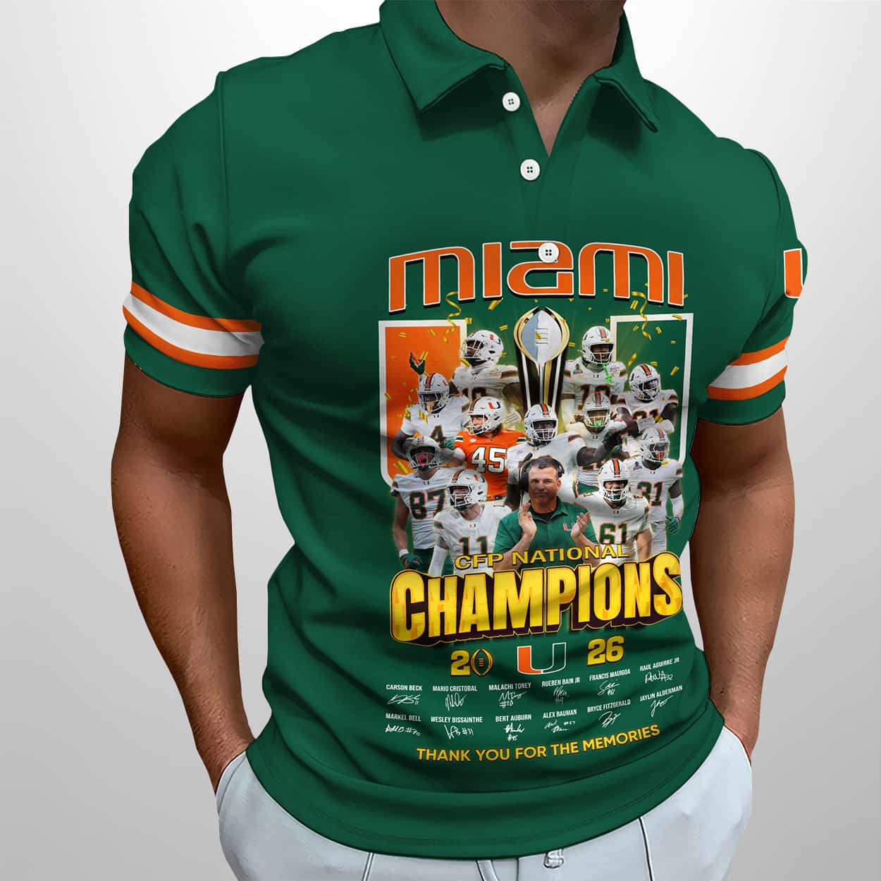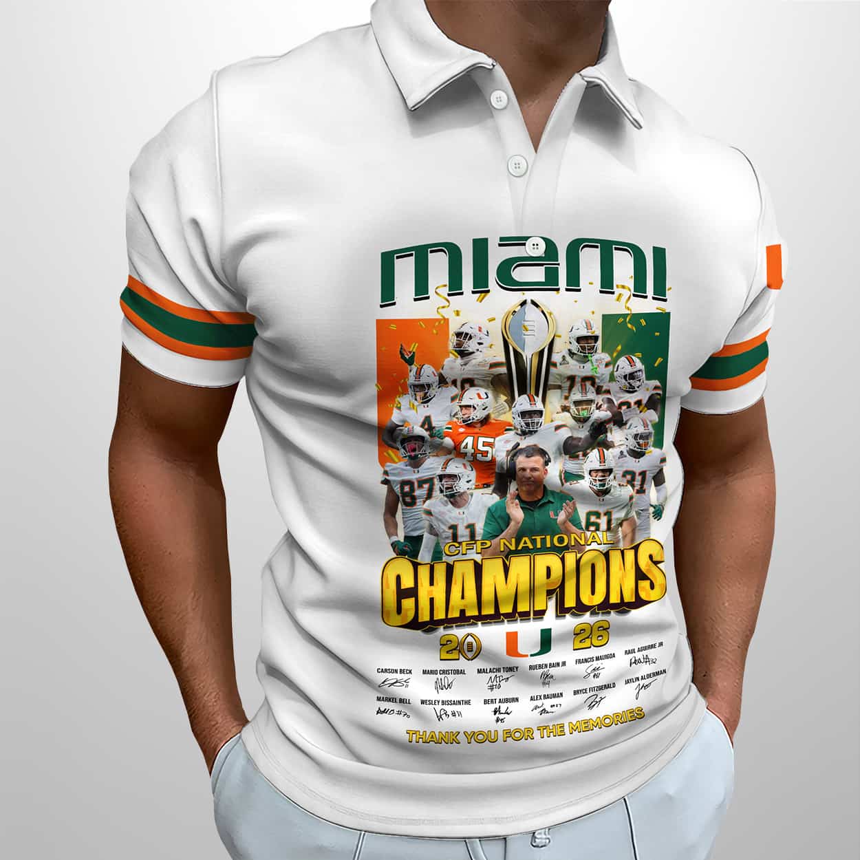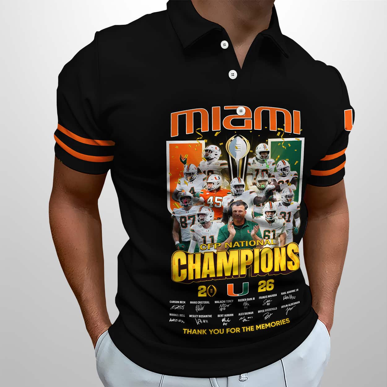 Turn heads and honor history with the 2026 Miami CFP National Champions Polo Shirt—where bold design meets championship legacy. A must-have for fans who live for the win.