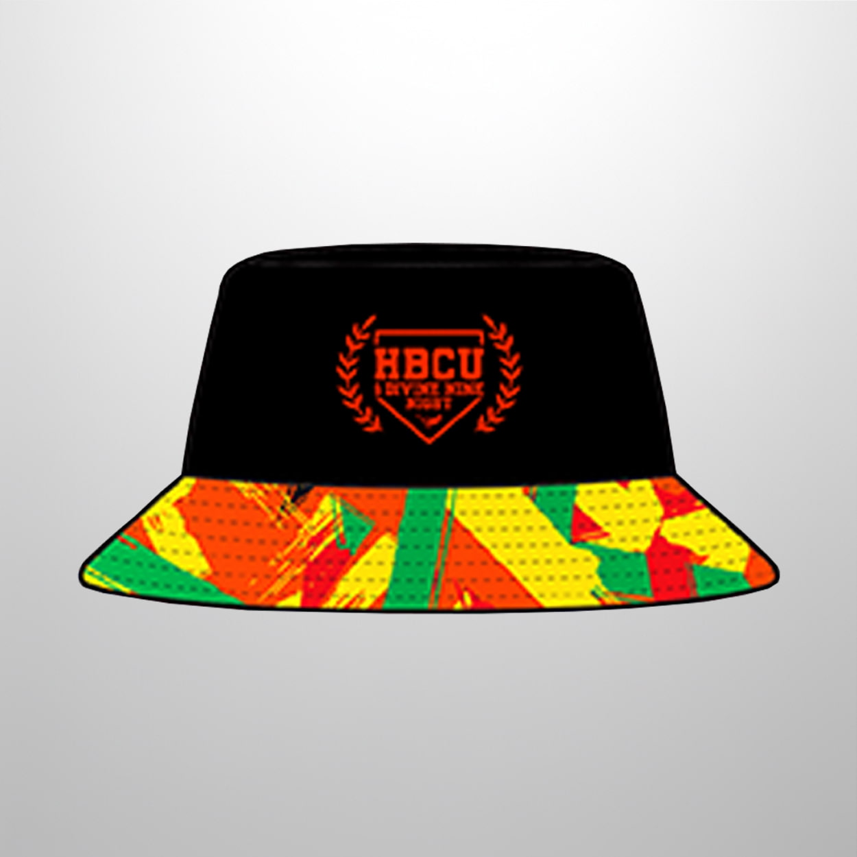 This hat is more than just headwear—it’s a celebration of legacy and flair. This eye-catching bucket hat features a sleek black crown adorned with two powerful visuals: one side showcases the “HBCU Week Foundation” emblem encircled by laurel leaves in vibrant orange, while the other side pops with a dynamic illustration of a bird in Orioles orange and black plumage. Wrapping around the brim is a dazzling abstract pattern in red, yellow, green, and orange—a visual symphony that commands attention and sparks conversation.