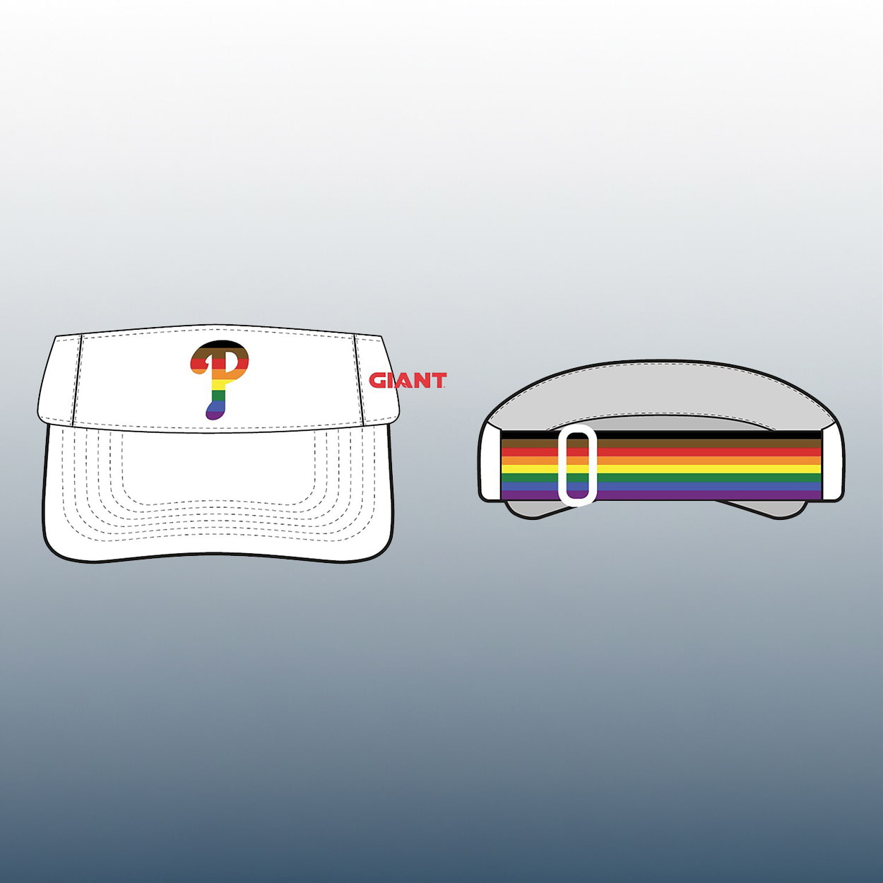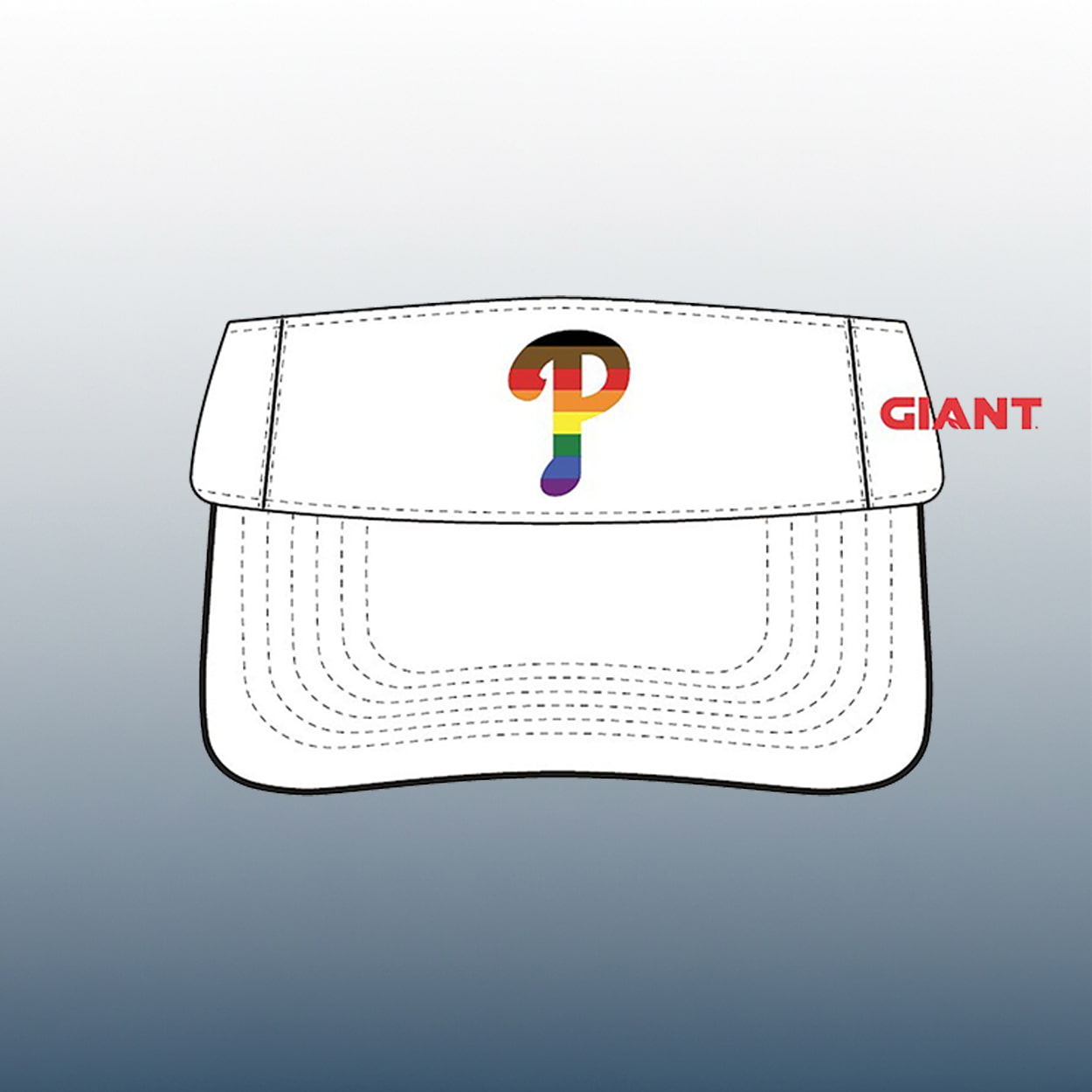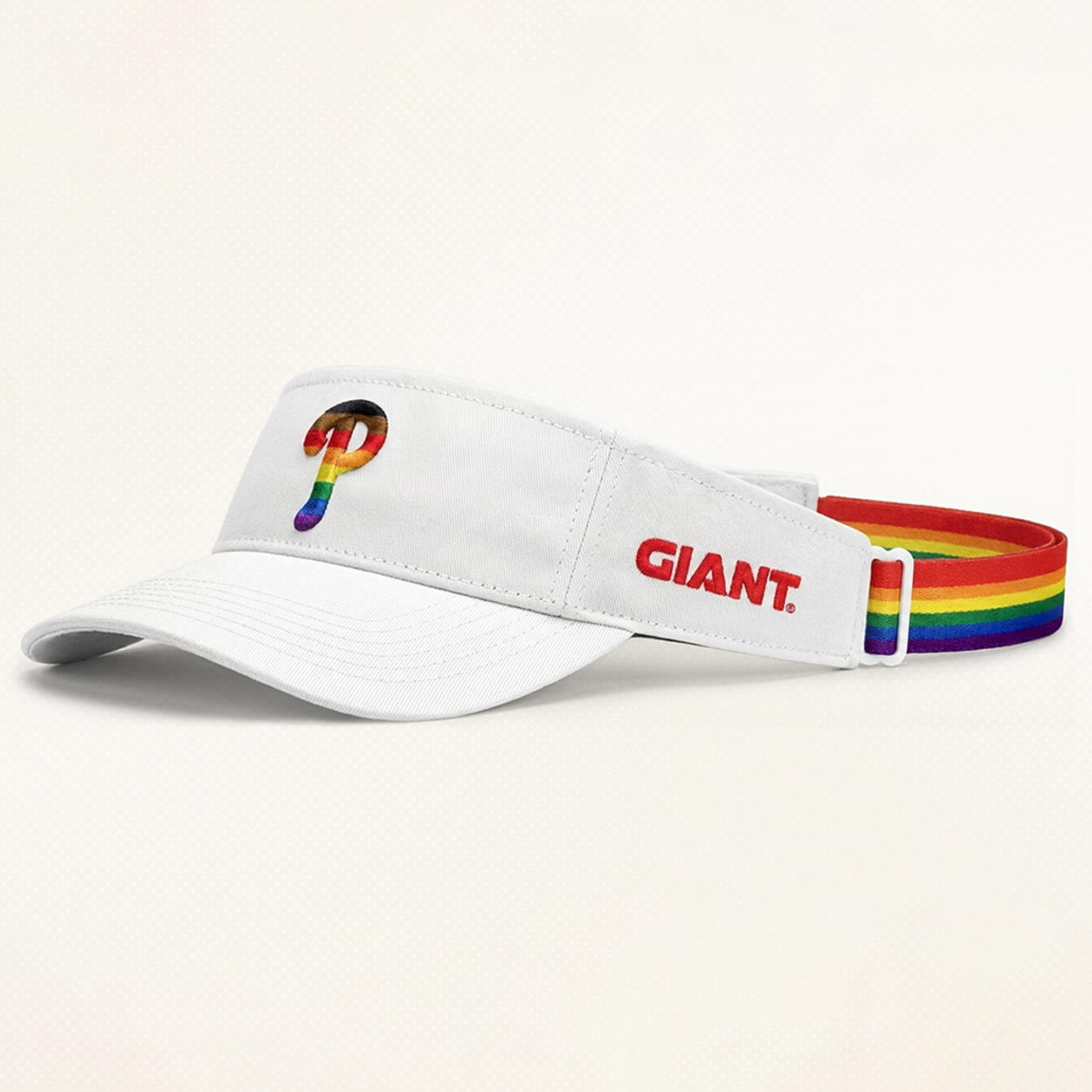 Step up to the plate with style at the 2026 Phillies Pride Night! This visor is the ultimate accessory for fans who want to keep the sun out of their eyes and the love in their hearts. This crisp white visor features a stunningly colorful twist on the classic Phillies “P” logo. The front-and-center pops with a full spectrum of pride, while the side is subtly accented with the GIANT logo in its signature red. Whether you’re catching a fly ball or a summer tan, this adjustable headpiece ensures you stay cool while looking even cooler.
