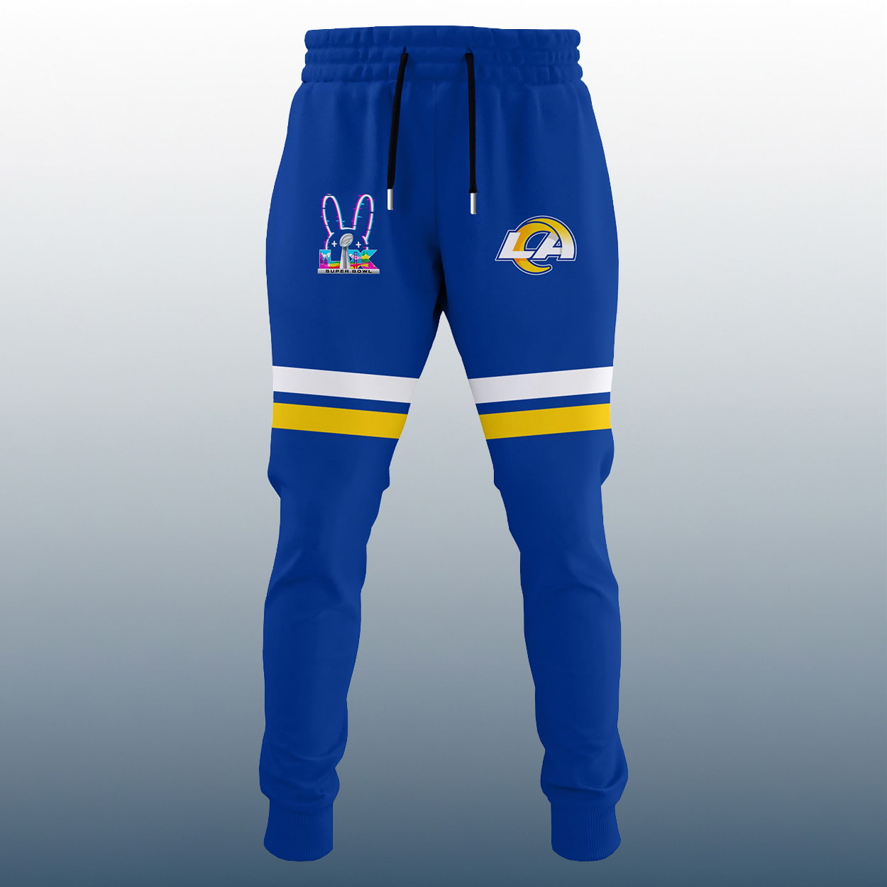 This hoodie is the ultimate fan crossover, blending the iconic “Royal and Sol” of the Los Angeles Rams with the avant-garde aesthetic of “El Conejo Malo”. This design commemorates the spectacular moment in 2026 when the gridiron met the global stage at Stadium. Featuring a relaxed, streetwear-inspired fit, this hoodie captures the electric atmosphere of the “Benito Bowl”—the year the halftime show became a worldwide “unforgettable dance”.