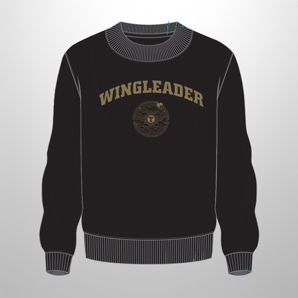 This sweatshirt Giveaway is more than just a stadium freebie—it’s a badge of honor. This sleek black pullover is accented with gray-striped ribbing at the collar, cuffs, and hem, giving it a sharp, athletic edge. Across the chest, the word “WINGLEADER” arcs in bold, gold lettering, commanding attention with confidence. Beneath it, a circular emblem featuring a bird motif adds depth and intrigue, evoking themes of flight, strength, and unity.
