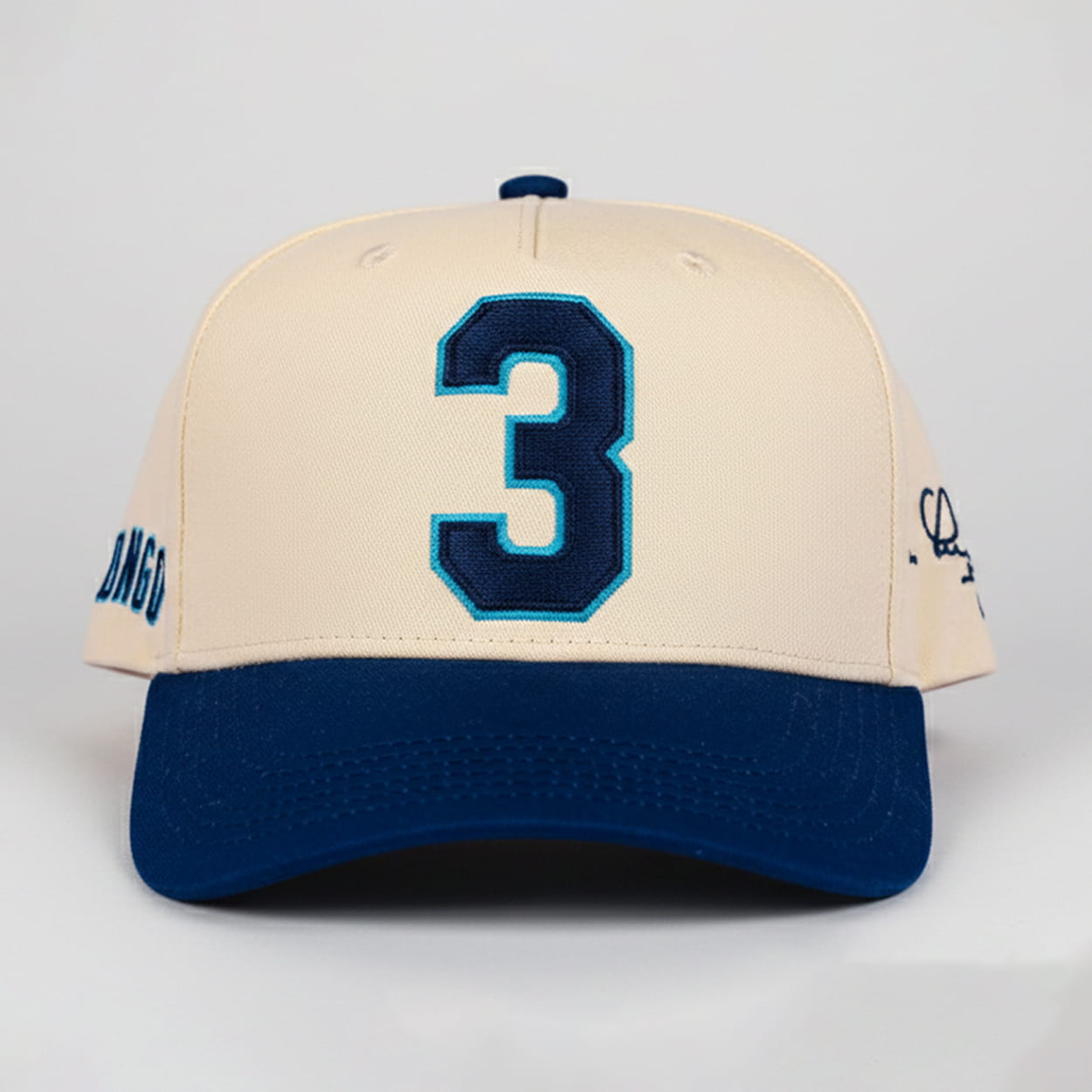 Step into Tropicana Field with a cap that speaks volumes. This cap is a tribute to one of the team’s most beloved players. Its cream-colored crown contrasts sharply with a dark blue brim, giving it a timeless look. Front and center, the bold number “3” stands tall in dark blue with a light blue outline, instantly recognizable as Longoria’s jersey number. On the side, a stylized signature add extra flair, making this cap a collector’s dream for fans who cherish Rays history.