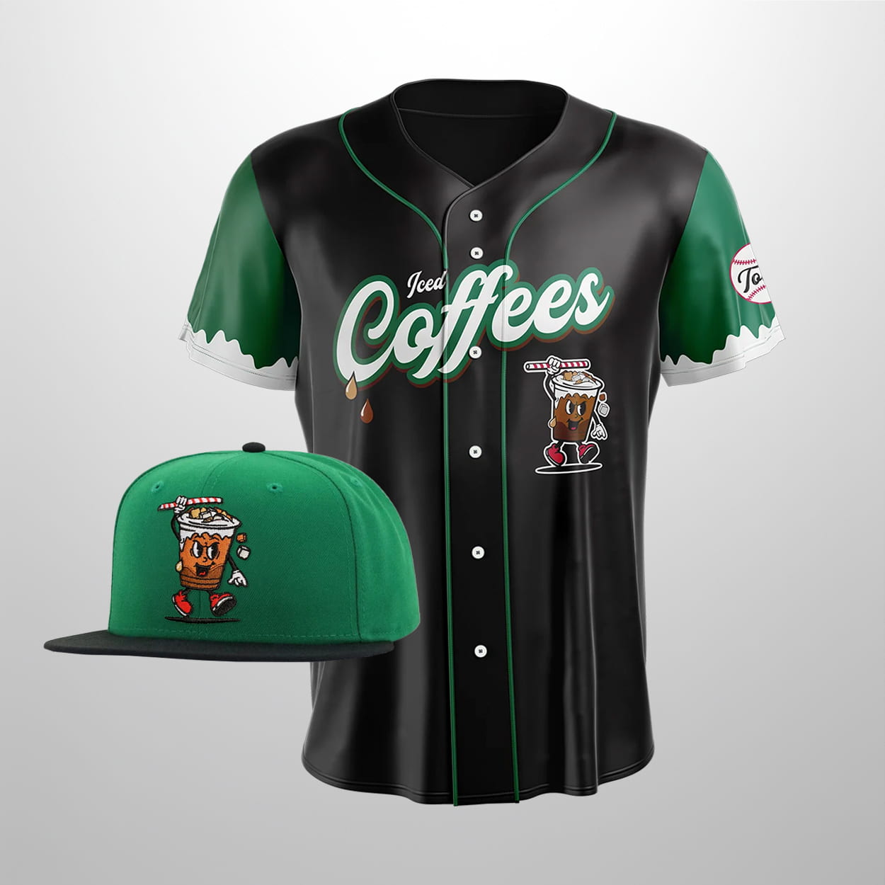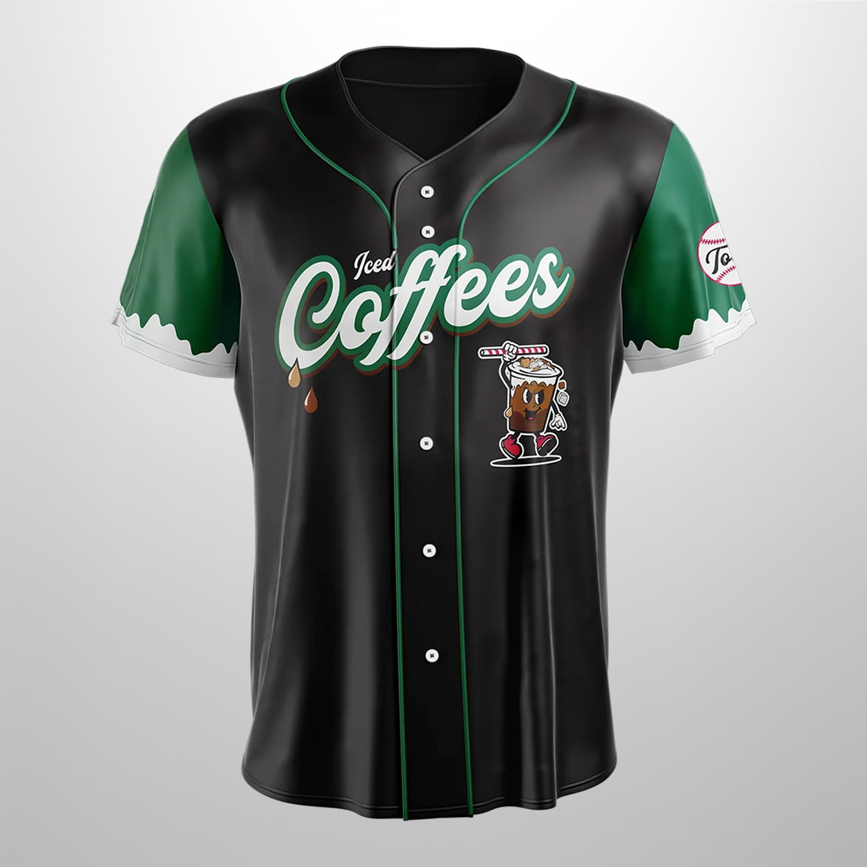 Designed for fans who bring the “buzz” to the stadium, this jersey takes inspiration from the city’s favorite morning (and afternoon) pick-me-up. The left chest features a spirited, animated iced coffee character—complete with a striped straw, a friendly grin, and running shoes—ready to sprint around the bases. The green piping and contrasting sleeves reflect the energy of a community that runs on caffeine and baseball. This isn’t just apparel; it’s a statement piece for bold thinkers who know that the best games start with a little extra jolt of personality and hometown pride.