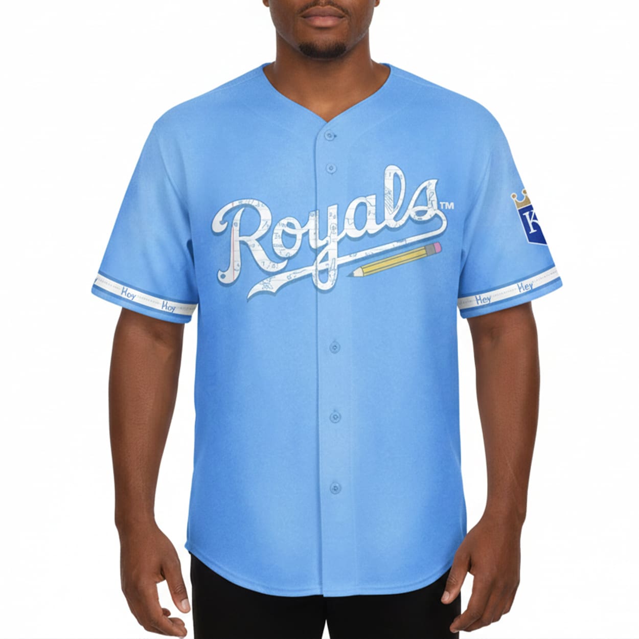 This jersey is a tribute to the educators who inspire, challenge, and uplift. The classic color palette evokes calm confidence, while the bat underline adds a playful nod to the power of knowledge. It’s a wearable thank-you to teachers who bring heart and hustle to every lesson. Whether you’re grading papers or cheering from the stands, this jersey says, “I teach, I lead, I Royals.”