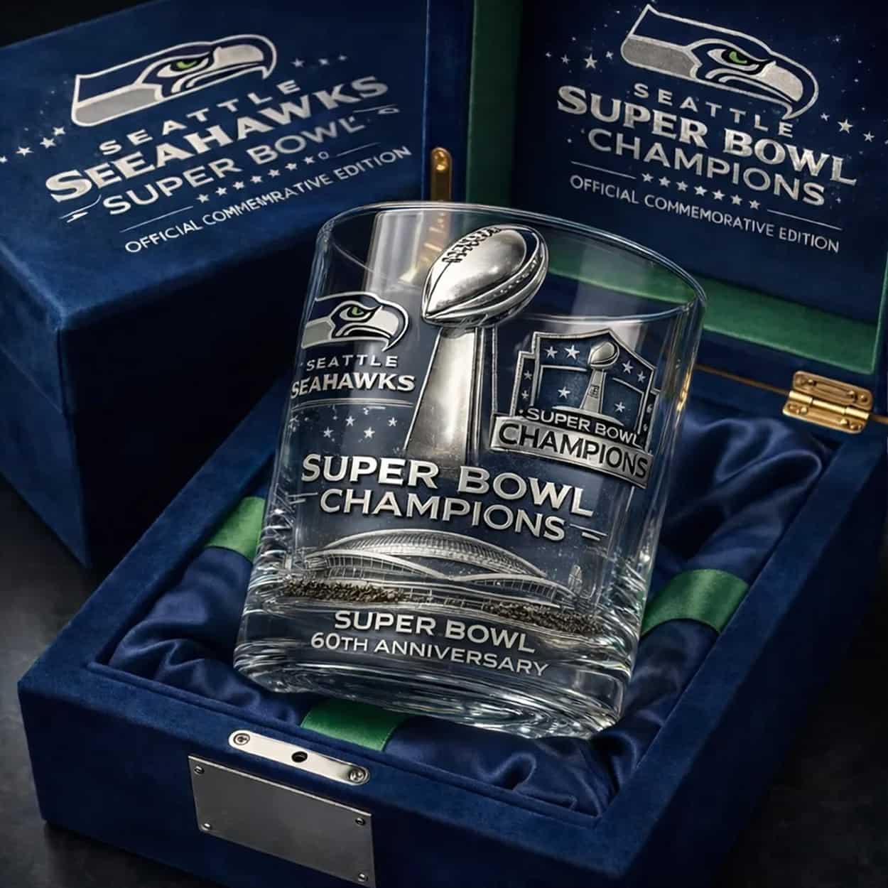Celebrate the Seattle Seahawks’ triumphant Super Bowl victory with the 2026 Seahawks Super Bowl Champions 60th Anniversary Whiskey Glass—a bold keepsake that blends history, pride, and celebration into one striking design.