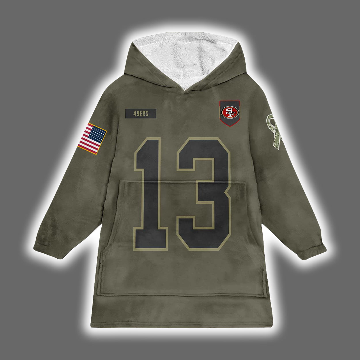 49ers Brock Purdy 13 Salute to Service Blanket Hoodie