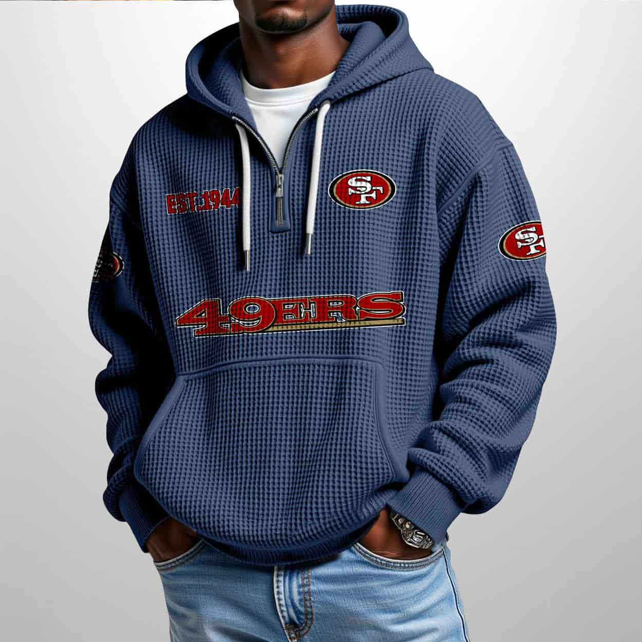 49ers Est 1944 Half Zip Waffle Hoodie – Gold Standard Comfort and Heritage