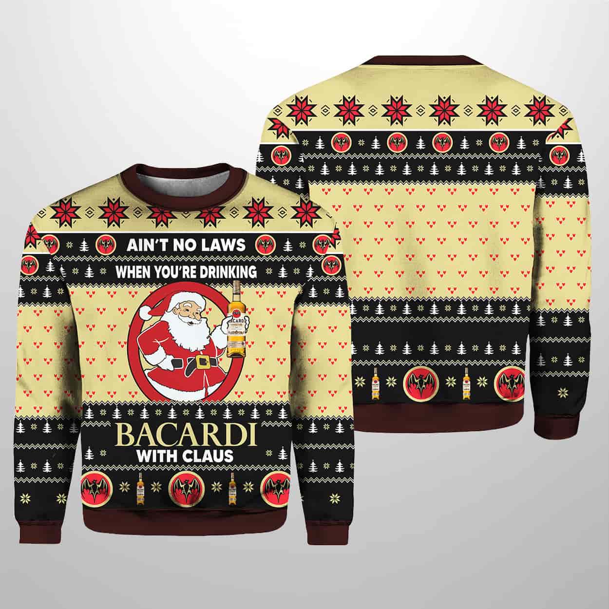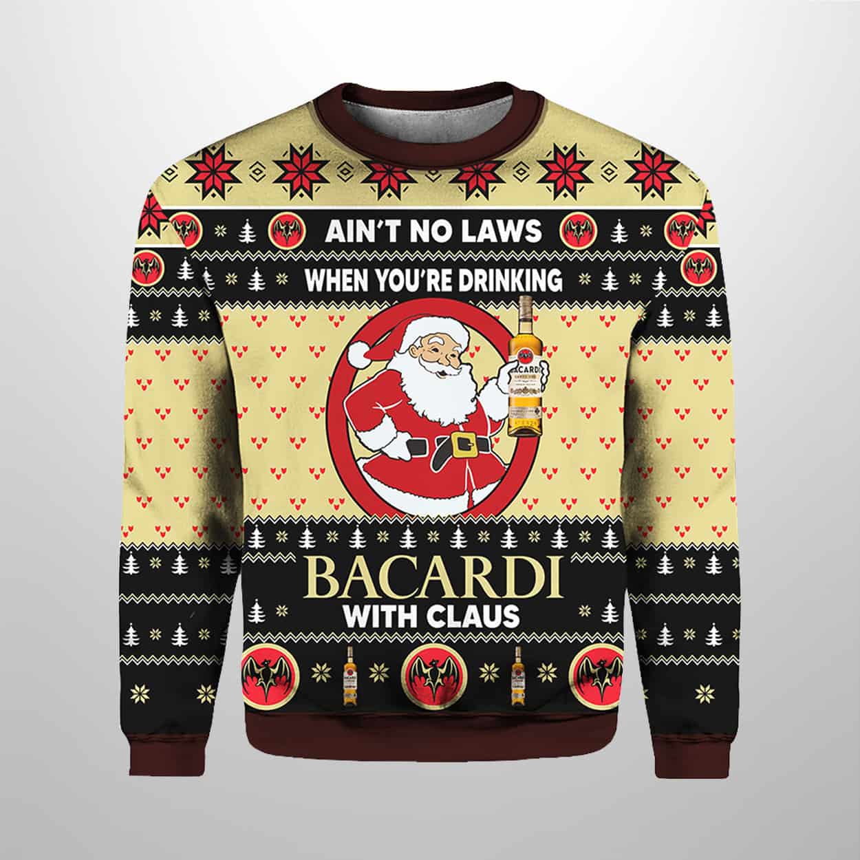 Ain’t No Laws When You Drink Bacardi With Claus Christmas Ugly Sweater