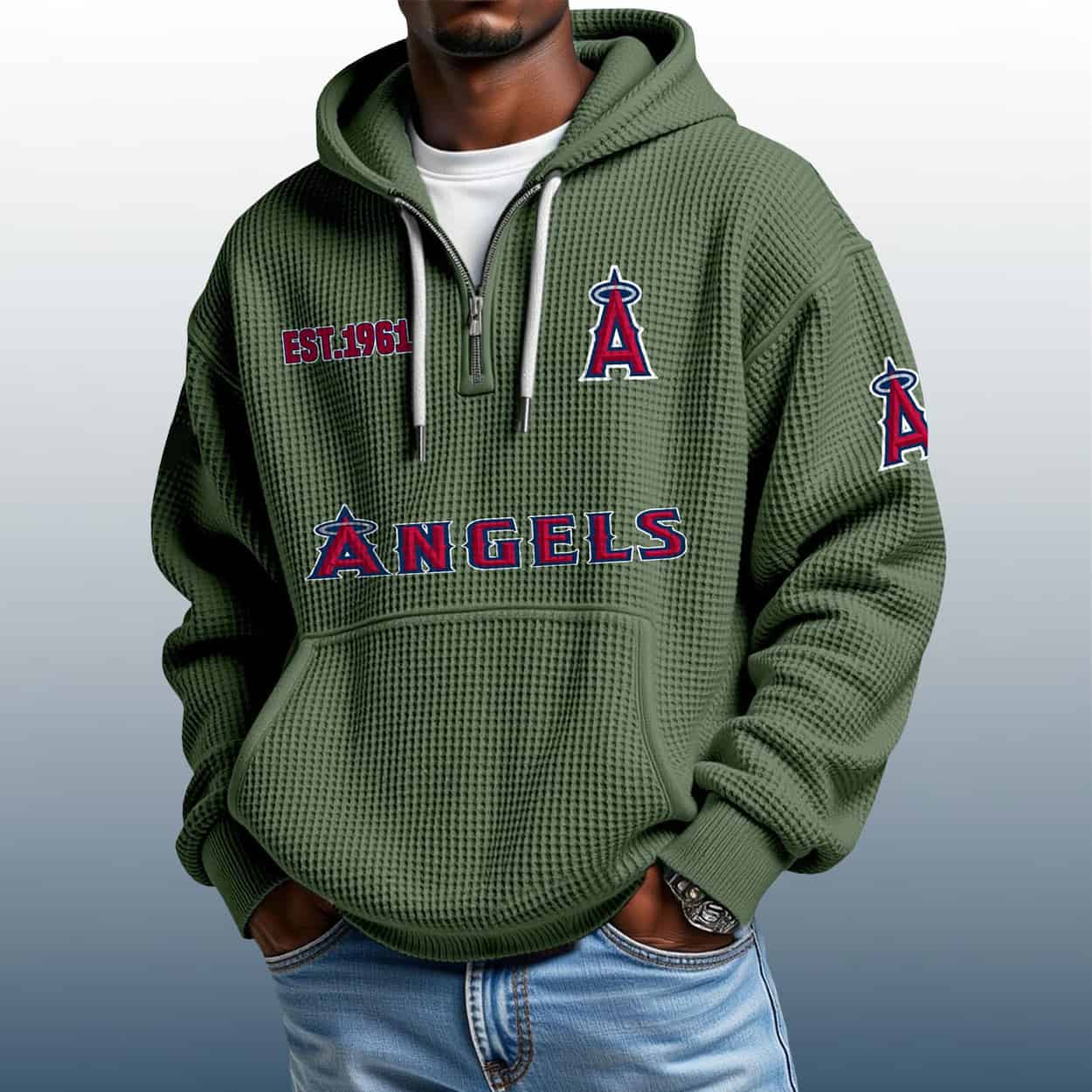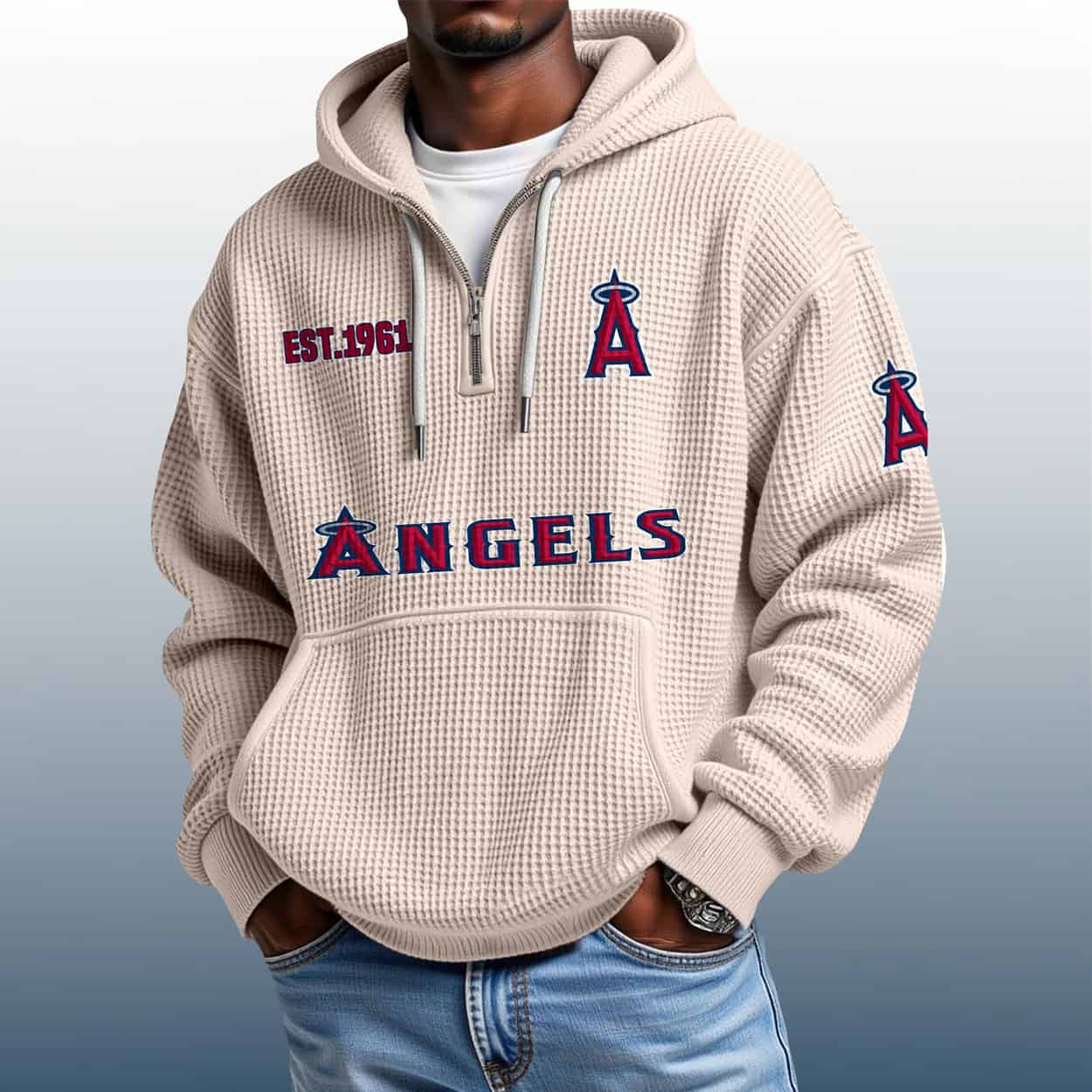 Whether you’re heading to the ballpark or just repping your team on the streets, the Angels Est 1961 Quarter Zip Waffle Hoodie is your go-to for standout style. Zip up, show off, and let the legacy live on.