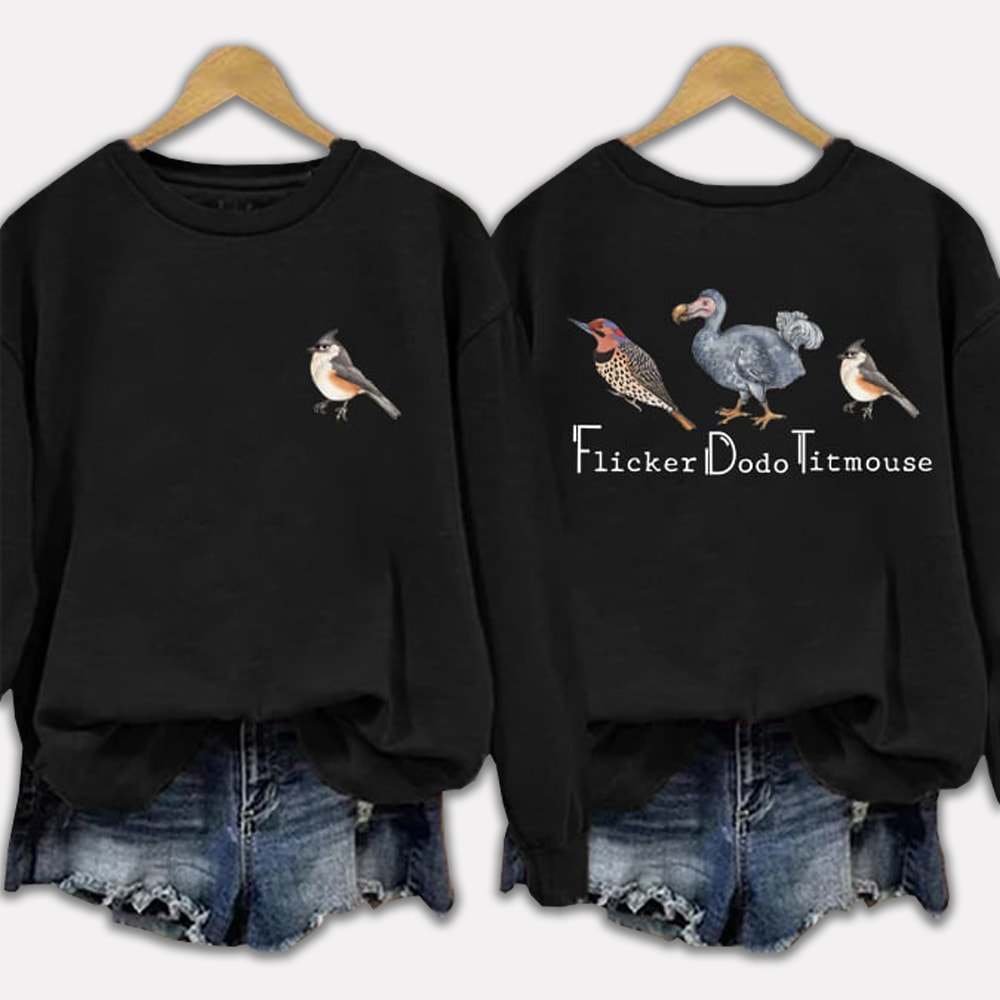 Discover the Animal FDT Flicker Dodo Titmouse Two-Sided Sweatshirt – a quirky, cozy piece featuring playful bird designs and witty text. Perfect for animal lovers and bold thinkers, this sweatshirt combines comfort with a statement-making style.