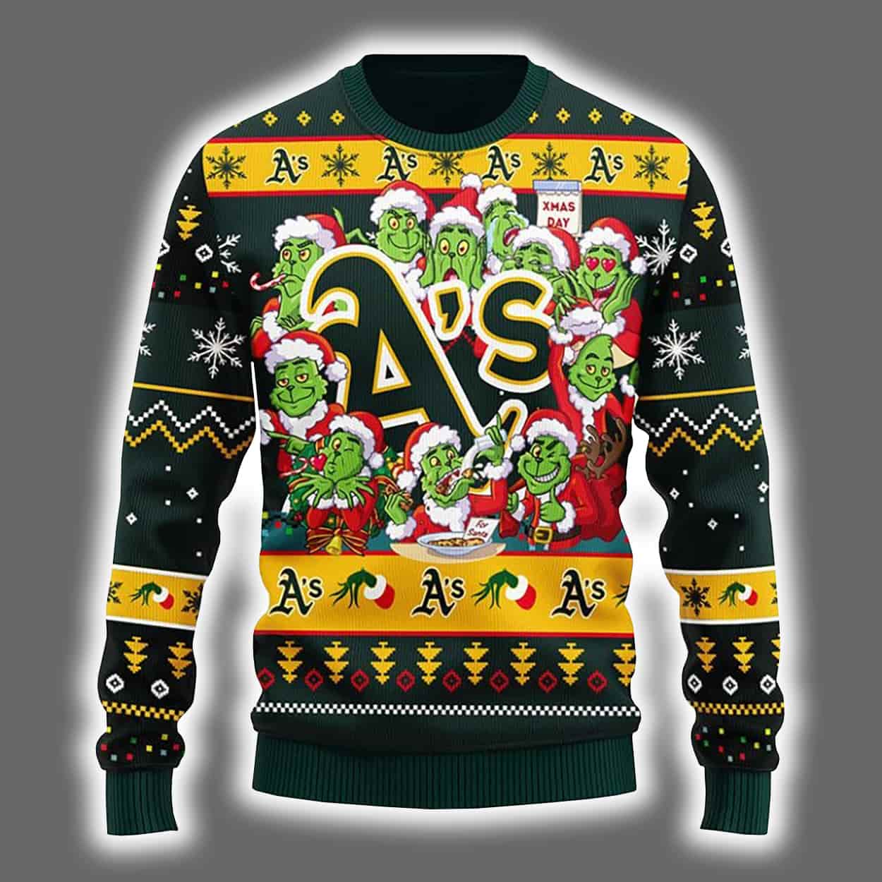 Athletics 12 Grnch Xmas Day Ugly Christmas Sweater – A’s Spirit with a Side of Sass