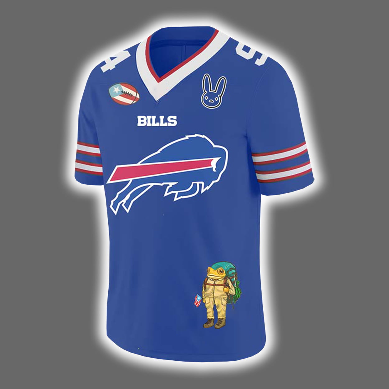 Celebrate culture, charisma, and championship energy with the Bad Bunny x Bills Halftime Show Jersey—a vibrant fusion of football, Puerto Rican pride, and pop icon flair.