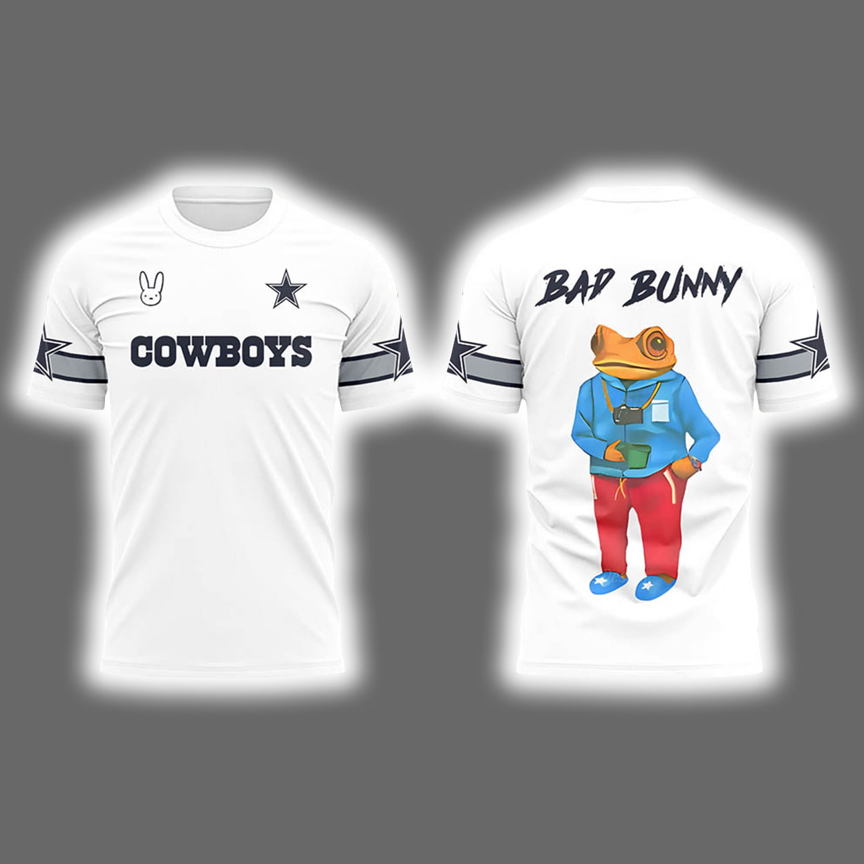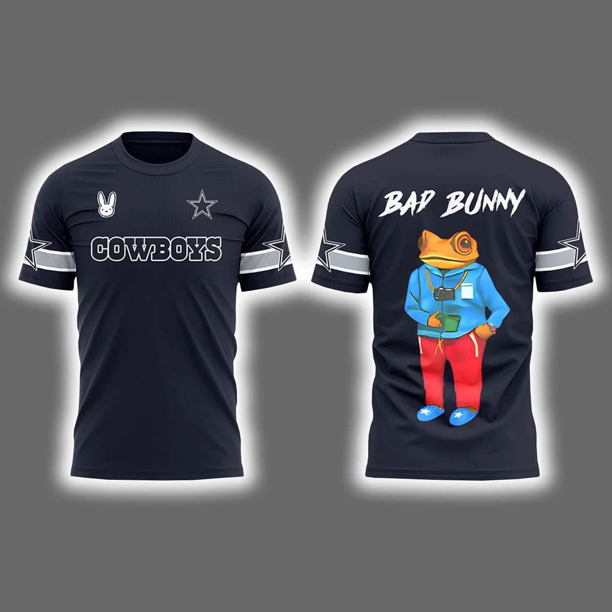 This shirt is where fandom meets flair. It’s a mashup of Bad Bunny’s fearless fashion and the Cowboys’ iconic legacy, designed for those who don’t just follow trends—they set them. Whether you’re vibing to reggaeton or cheering on game day, this piece lets you do both with unapologetic style.