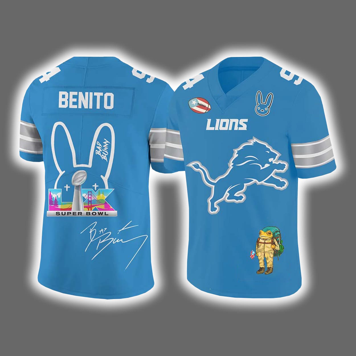 Step into the spotlight with the Bad Bunny x Lions Halftime Show Jersey—a vibrant mashup of Detroit pride, pop culture swagger, and championship energy. A collector’s dream for fans who play by their own rules.