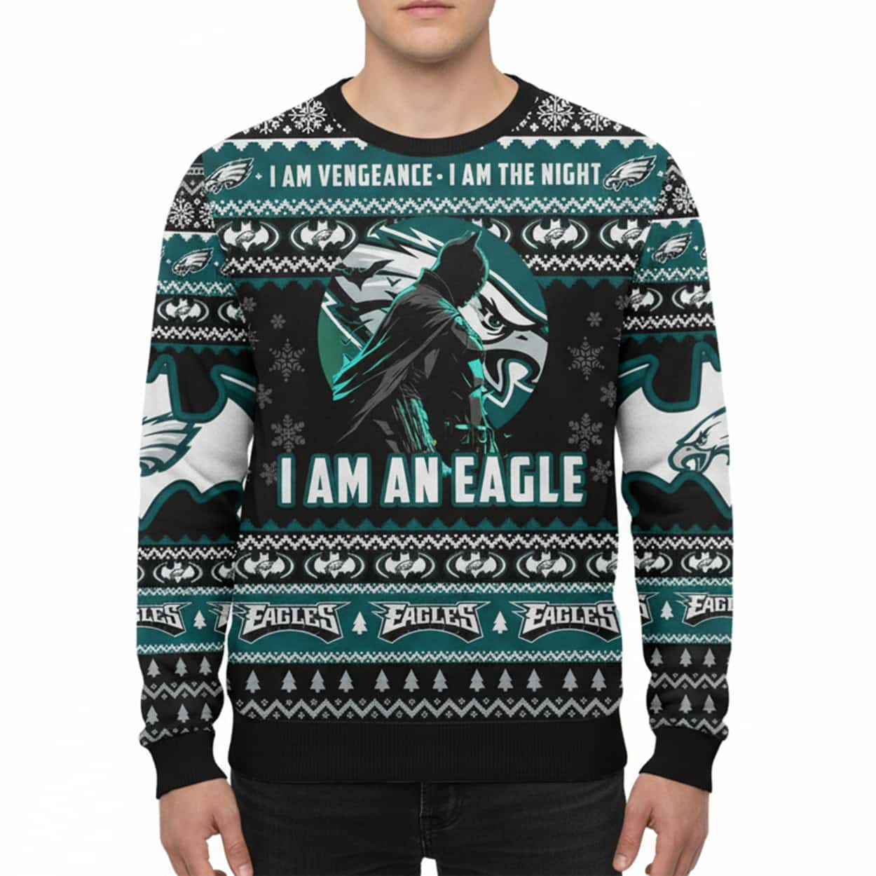Caped Crusader Meets Gridiron Glory: The Badman I Am Vengeance I Am The Night I Am A Eagle Ugly Christmas Sweater