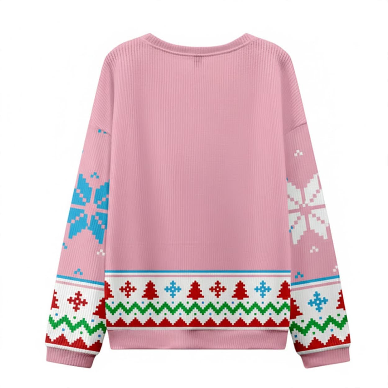 This Be Salty Stay Lit Christian Ugly Christmas Sweater offers a fun and faithful message in a stylish holiday package. The pullover comes in a soft pink, perfectly offset by classic red, white, green, and blue Fair Isle-style patterns, including Christmas trees and snowflakes. The center of the design features the modern, witty phrase “BE SALTY STAY LIT” with the direct Bible verse reference “matthew 5:13-16” printed just below it.