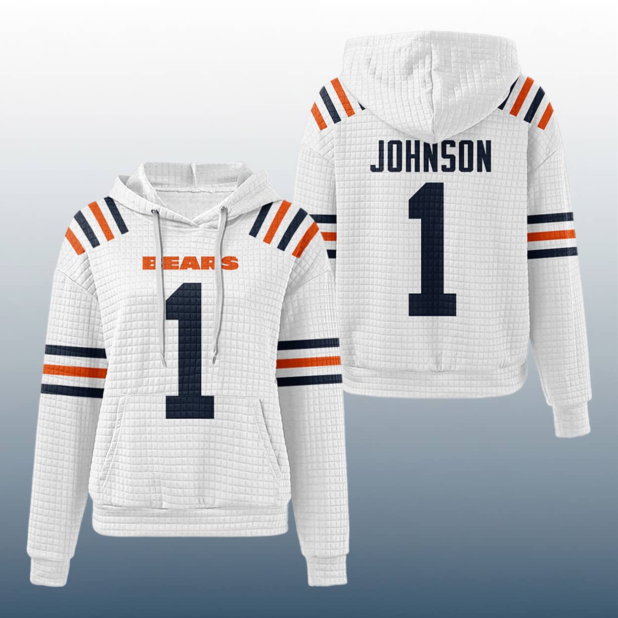 Turn heads and tackle comfort with the Bears Jaylon Johnson 1 Waffle Hoodie—a bold tribute to Chicago grit and gridiron swagger.