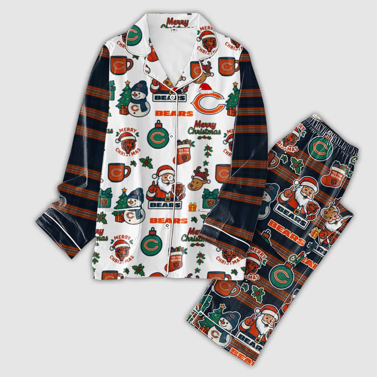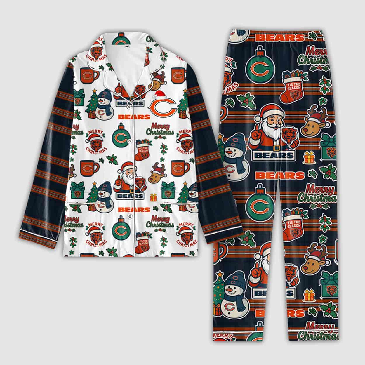 Celebrate the season in bold Bears style with the Bears Merry Christmas Plaid Button Pajama Set—where festive cheer meets football fandom in a cozy, eye-catching design.