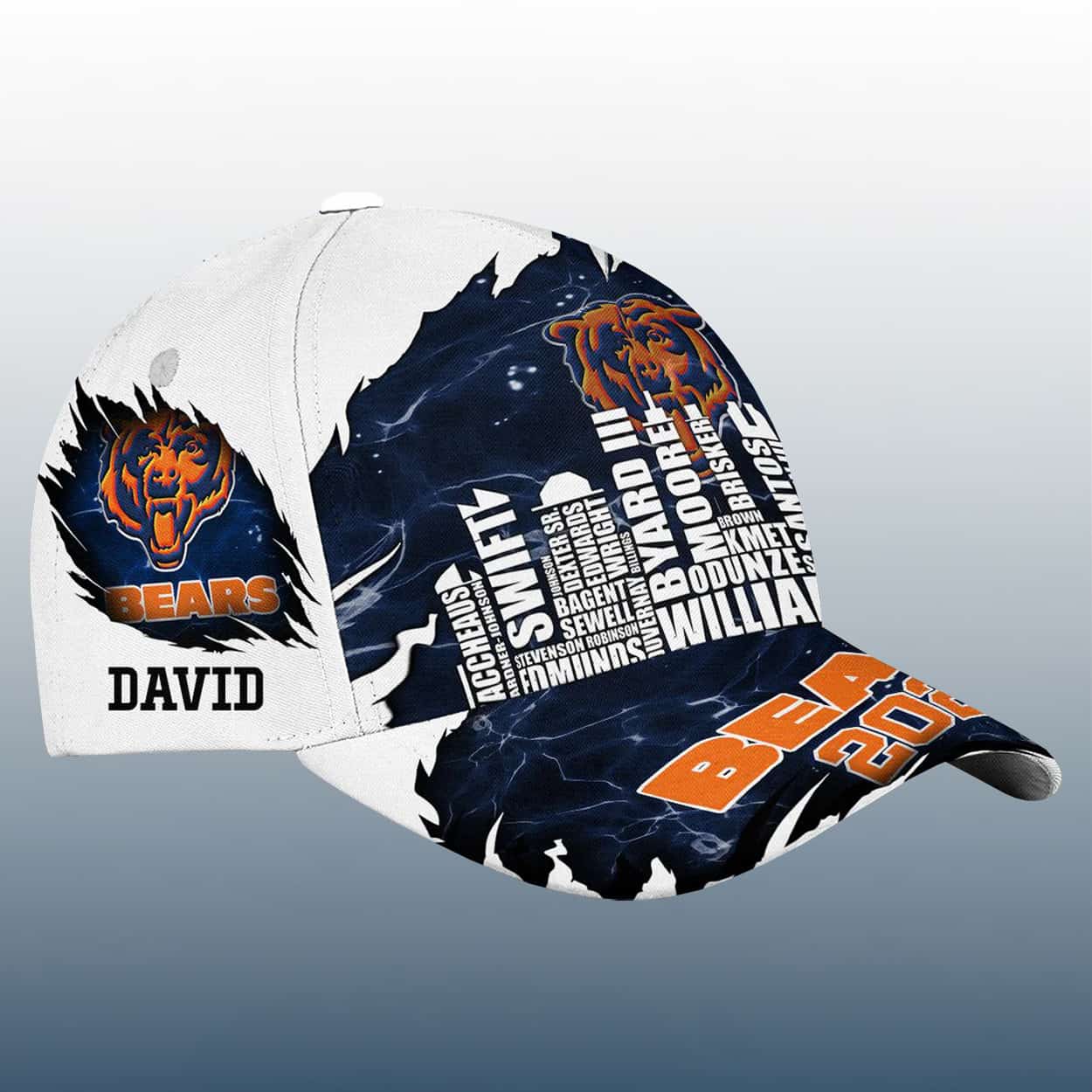 This cap isn’t just gear—it’s a vision. The claw-mark motif adds a wild edge, as if the cap itself has been through the trenches of Soldier Field. The scattered names form a constellation of talent, each one a building block in the Bears’ towering legacy. It’s a wearable tribute to grit, hustle, and the bold spirit of Chicago. Designed for fans who don’t just cheer—they lead the charge.