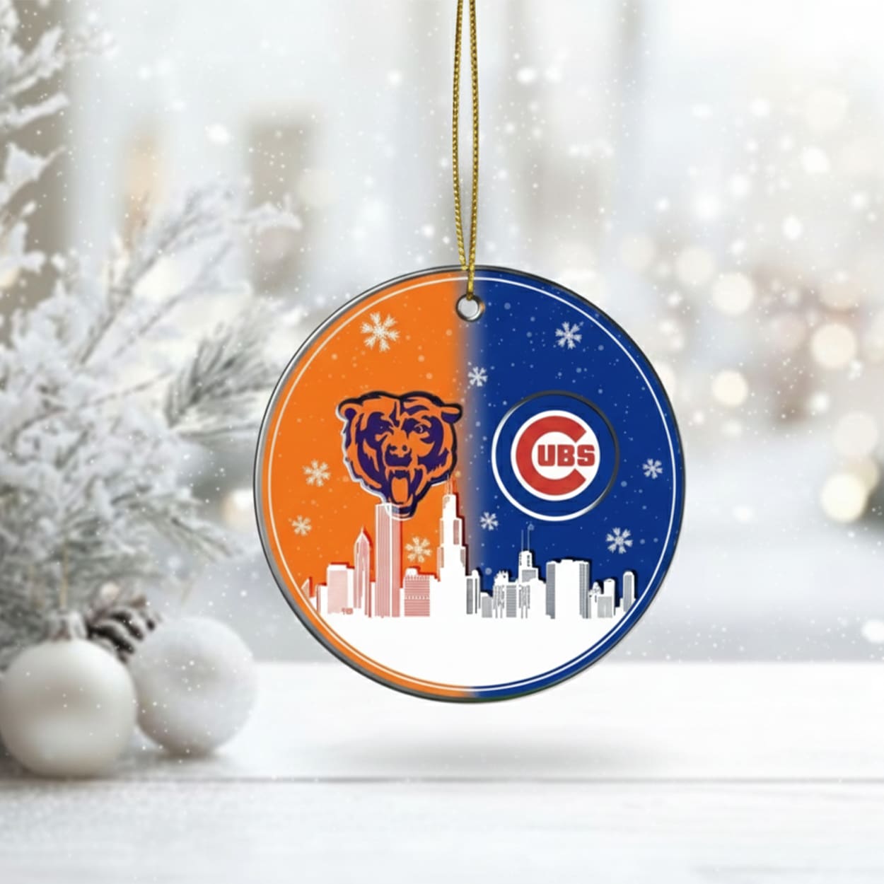 Windy City Wonder: The Bears x Cubs Skyline Christmas Ornament