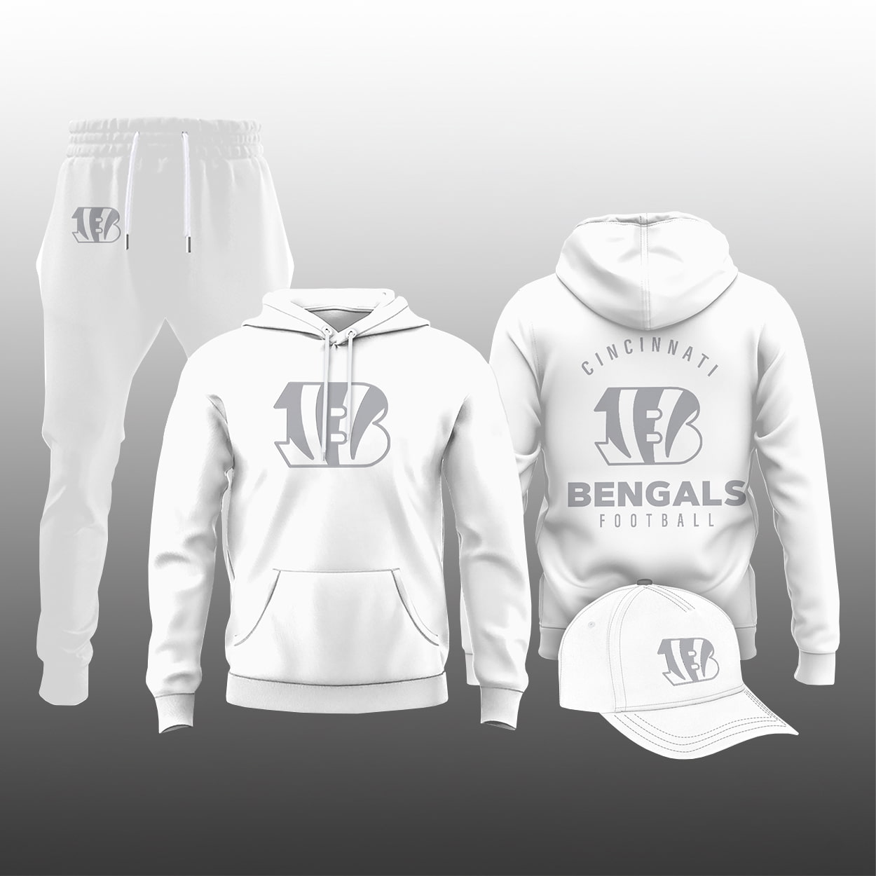 Bengals 2026 White Out Hoodie Joggers Cap