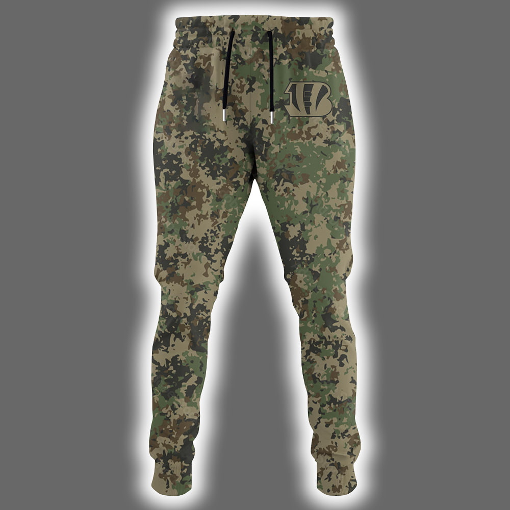 Gear up for the most meaningful game night of the year with the Bengals Happy Veterans Day Night Game 2025 Hoodie Joggers Cap. This three-piece set—featuring a hoodie, joggers, and cap—is the ultimate way to stand with your favorite team while honoring the brave men and women who have served our country. The hoodie and joggers sport a striking digital camouflage pattern, a nod to military uniform, with the hoodie featuring a bold graphic on the back. The cap ties the look together with a matching bill and the same powerful logo. Each piece is crafted for comfort and style, perfect for cheering on the Bengals at the stadium or from your couch.