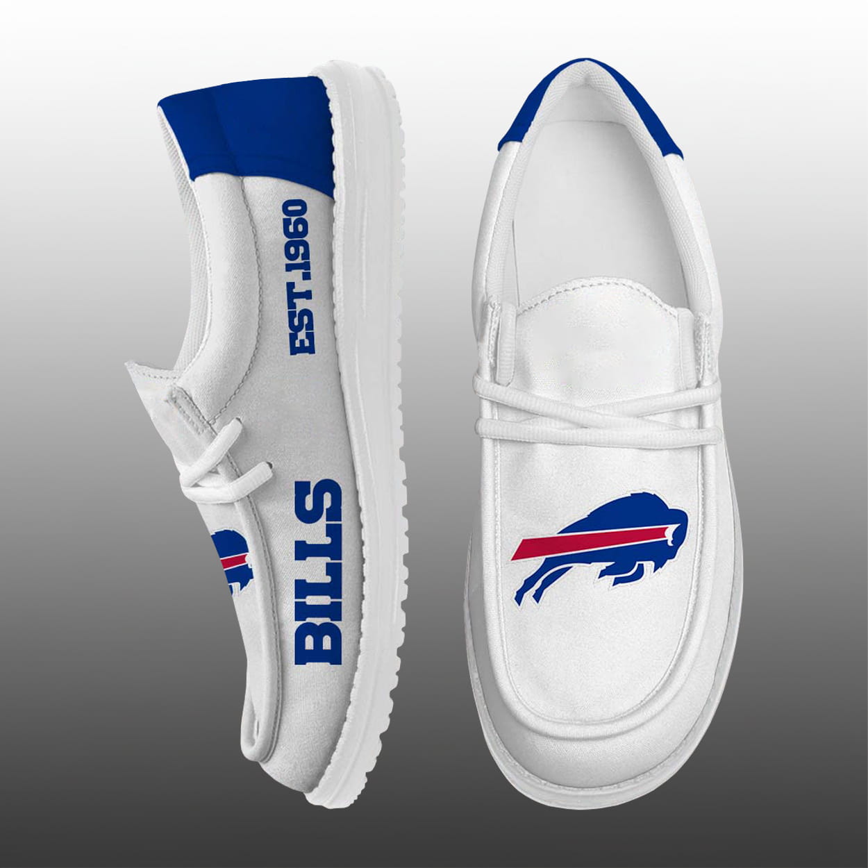 Ready to rep your team from the ground up? Slide into the Bills Est 1960 Canvas Shoes and let every step shout your allegiance. Game on—your style just scored.