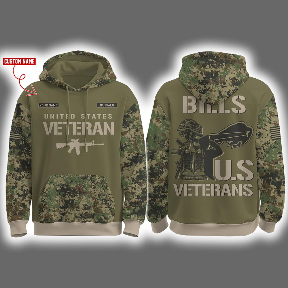 Get ready to tackle game day in style while paying tribute to our brave service members with the Bills Happy Veterans Day Night Game 2025 Hoodie Joggers Cap! This ensemble includes a rugged camouflage hoodie, matching joggers, and a sharp baseball cap, all designed to showcase your unwavering team spirit and appreciation for veterans. The hoodie features a bold “UNITED STATES VETERAN” graphic with a tactical rifle silhouette on the front, customizable with your name and “BUFFALO” proudly displayed. The back is emblazoned with “BILLS” and a powerful graphic of a soldier, complete with the Bills logo, and “US VETERANS.” The joggers continue the digital camo pattern, subtly accented with a black Bills logo on the hip. To complete the look, the cap sports a solid olive-green crown with the same impactful soldier and Bills logo graphic, while the brim features the striking camouflage pattern.