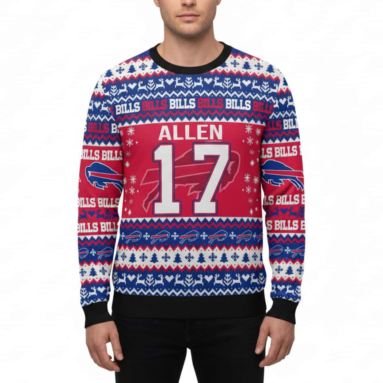 Bills Josh Allen 17 Ugly Christmas Sweater