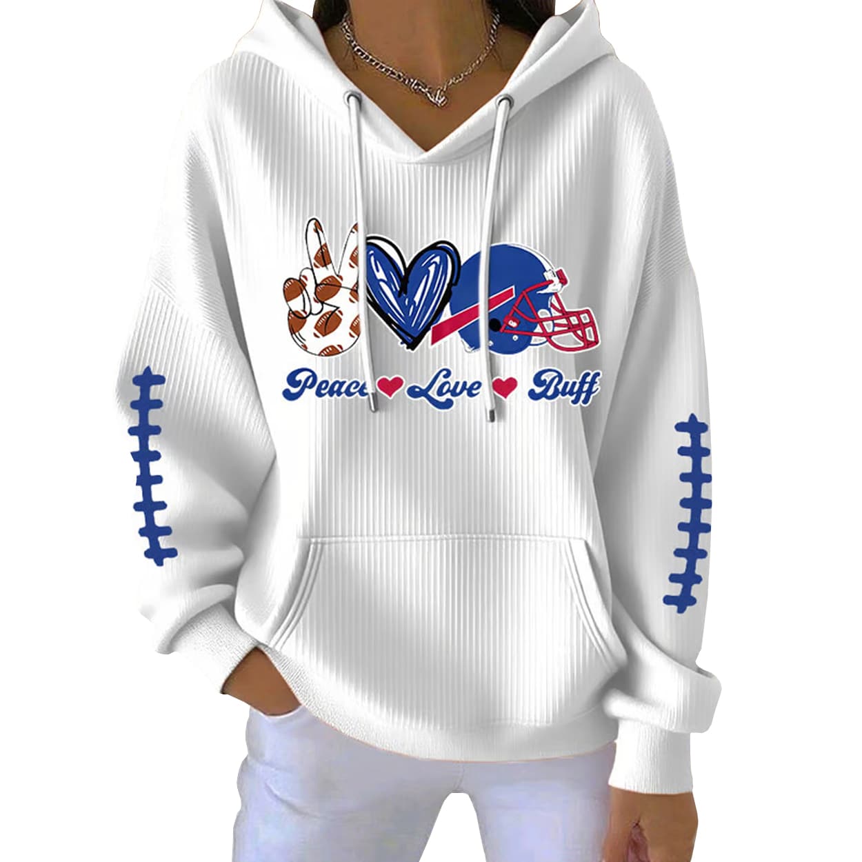 Ready to rep your Buff pride with flair? Slip into the Bills Peace Love Buff Pit Striped Hoodie and let your outfit do the talking. Game day or any day—this is your go-to for bold style and unbeatable energy.