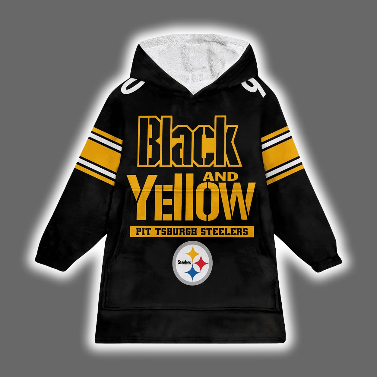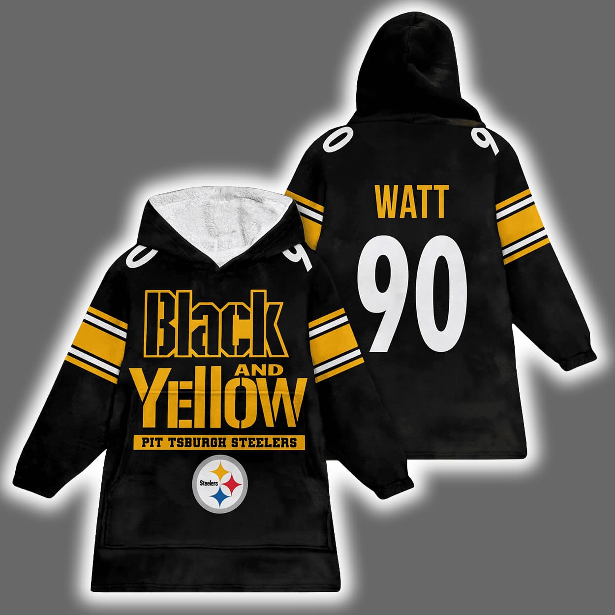 Wrap Yourself in Watt Power — The Black And Yellow T.J.W 90 Pittsburgh Football Unisex Blanket Hoodie