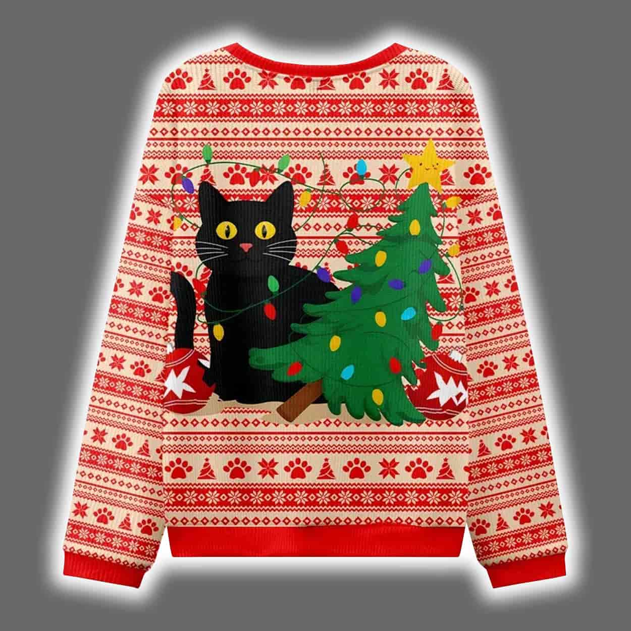 Black Cat Destroys Christmas Tree Ugly Christmas Sweater