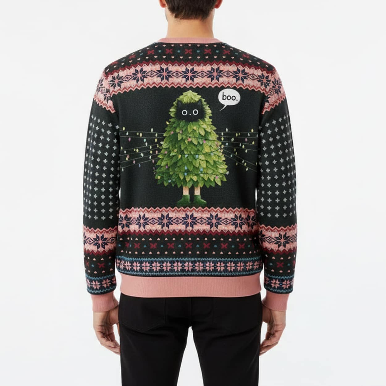 Black Cat Tired Kitsmas Tree Ugly Christmas Sweater