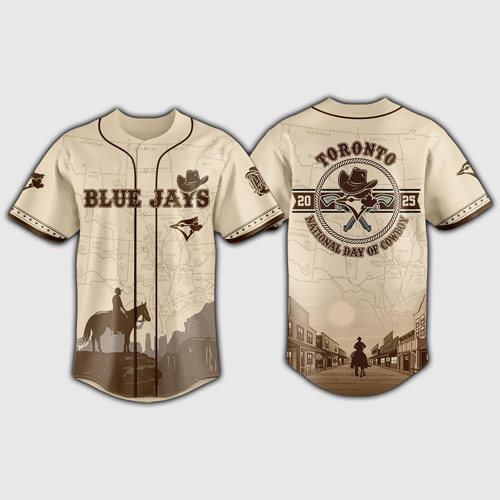 Celebrate the fusion of baseball and cowboy heritage with the Blue Jays 2025 National Day Of Cowboy Jersey—a stylish tribute to wild western spirit and Toronto pride.