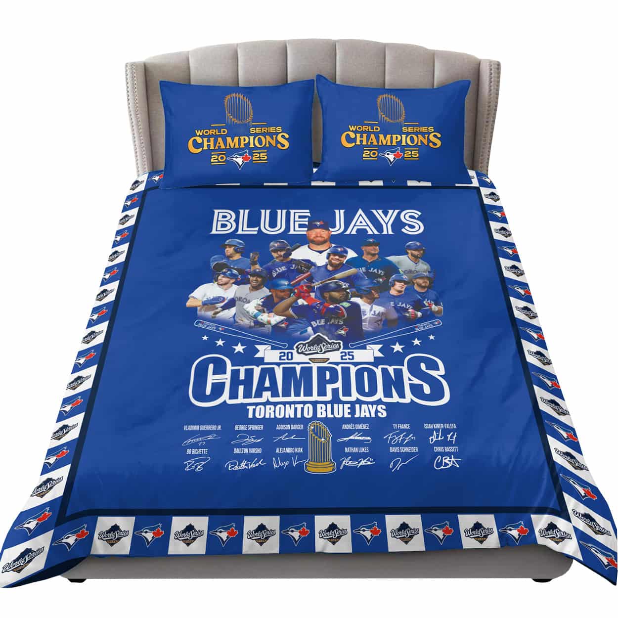Ready to turn your room into a shrine of champions? Make every night a home run—grab the Blue Jays 2025 World Series Champions Bedding Set and dream in victory blue.