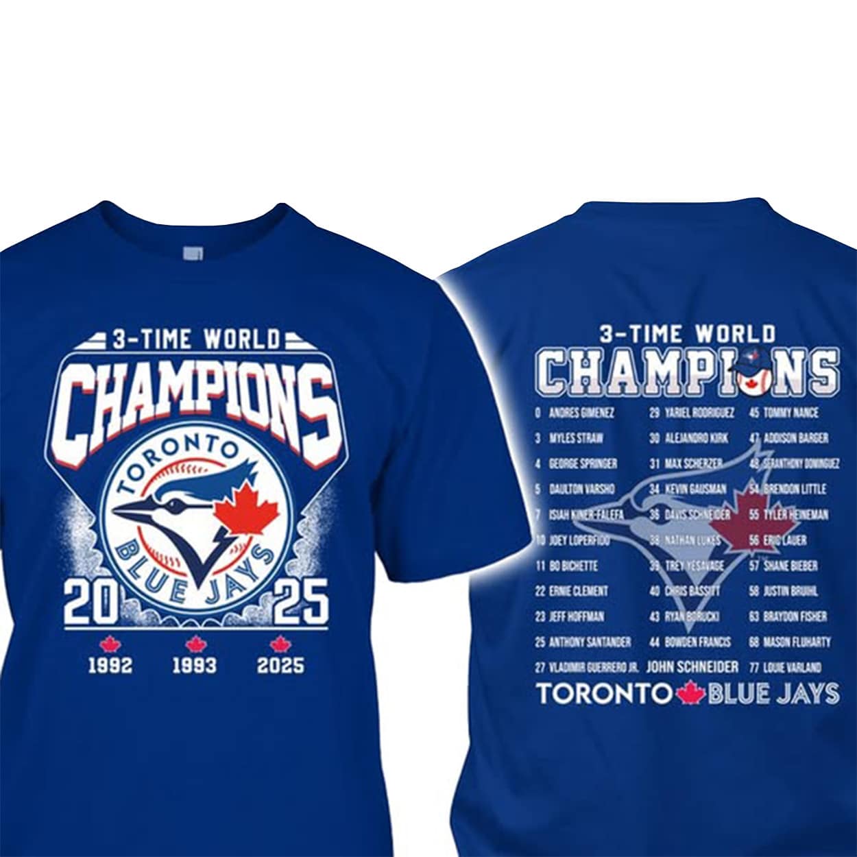 Be the first to review “Blue Jays 3-Time World Series Champions 2025 Two-Sided Shirt” Cancel reply