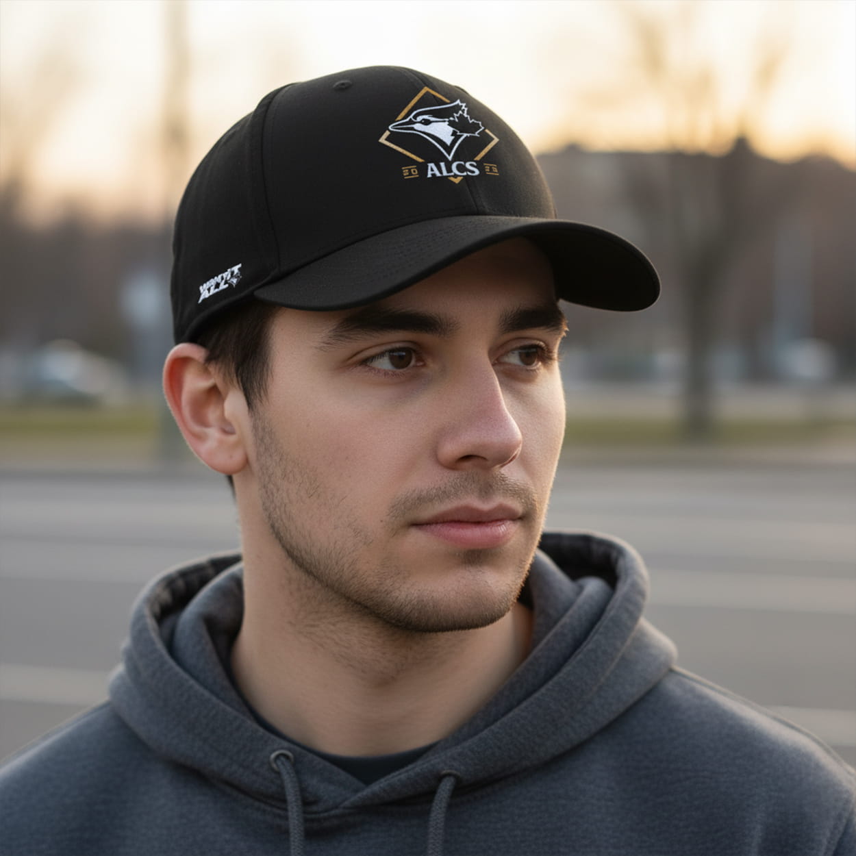 Turn heads and tip caps with this hat—a postseason essential for fans who live for October baseball. The front features a fierce bird emblem, perched inside a golden diamond that radiates championship energy. Just below, “ALCS” is boldly stamped, marking the Jays’ climb toward glory. On the side, the phrase “WANT IT ALL” is printed in crisp white, a rallying cry for those who believe in going all the way.