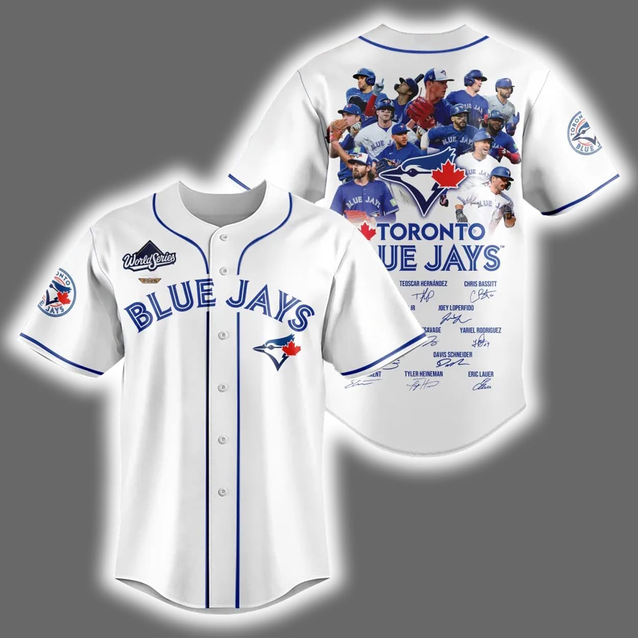 Celebrate the Toronto Blue Jays with the Blue Jays World Series 2025 Signature Jersey—featuring player autographs, bold graphics, and a design that honors the heart and hustle of a championship team.