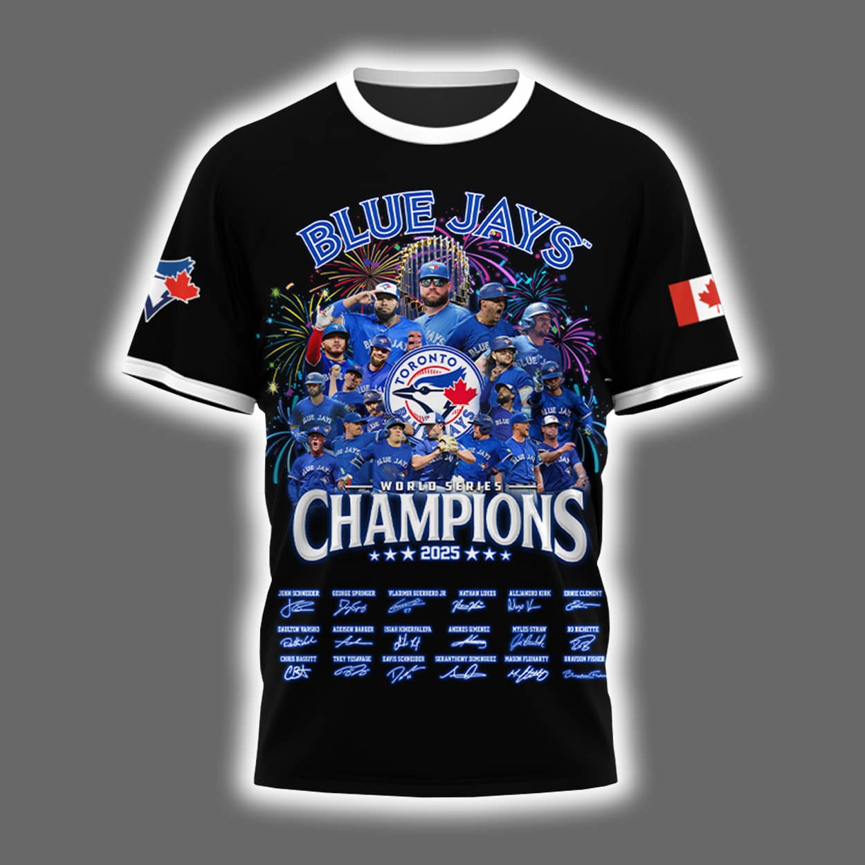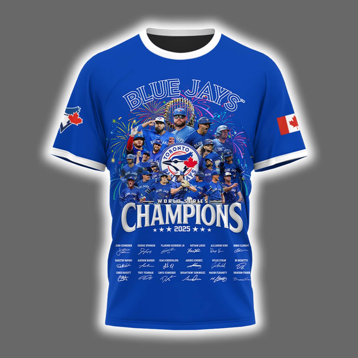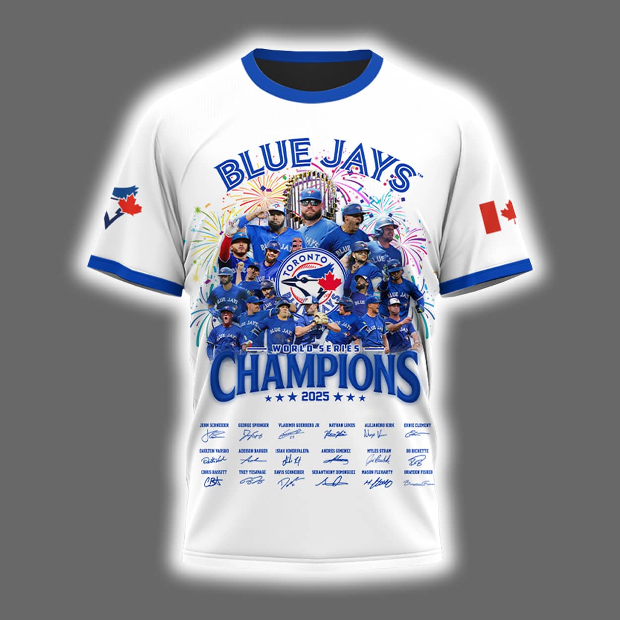 Fireworks, Signatures & Championship Swagger: The Blue Jays World Series Champions 2025 Signature Shirt