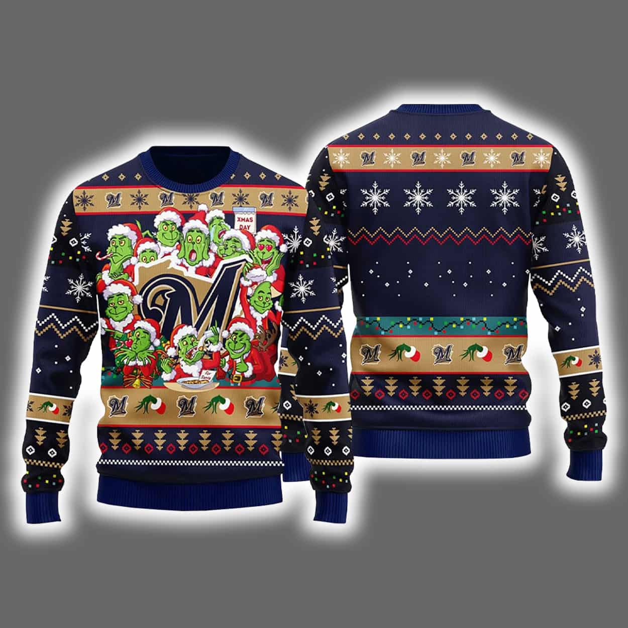 Celebrate the holidays with a bold twist in the Brewers 12 Grnch Xmas Day Ugly Christmas Sweater—a festive fusion of baseball fandom and Grinchy mischief that’s impossible to ignore.